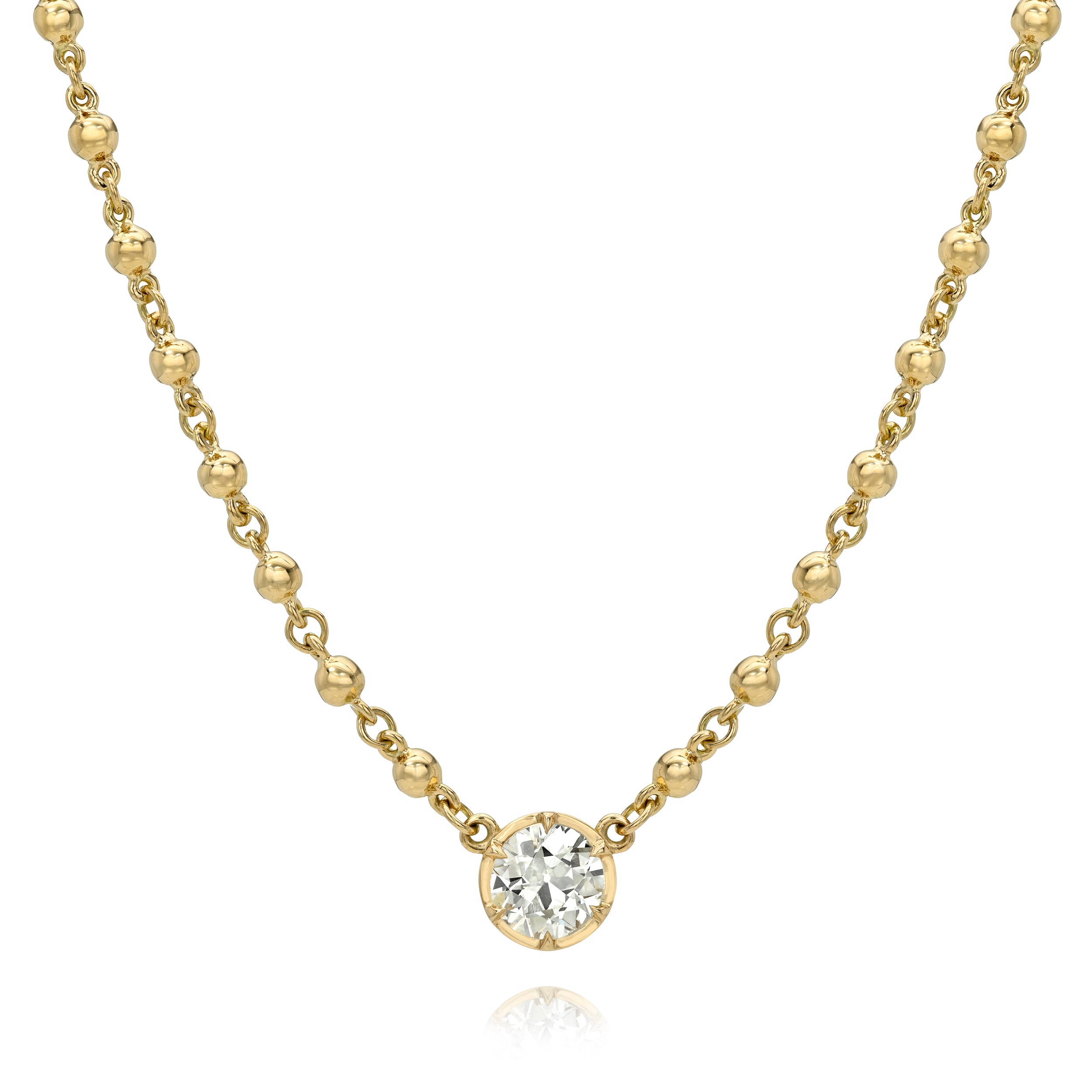 1.64ct L/VS1 GIA certified old European cut diamond prong set on our handcrafted 18K yellow gold Rosary chain.