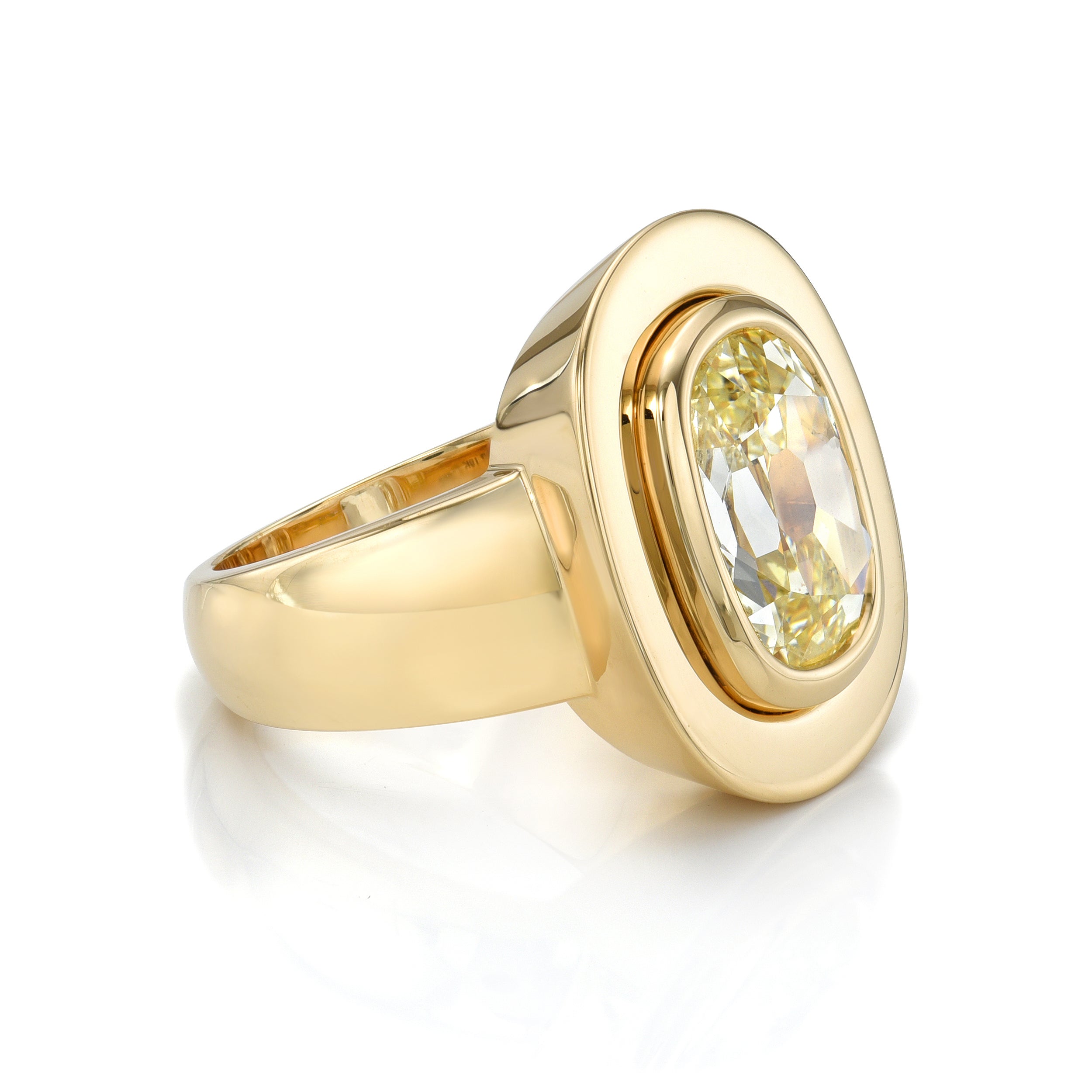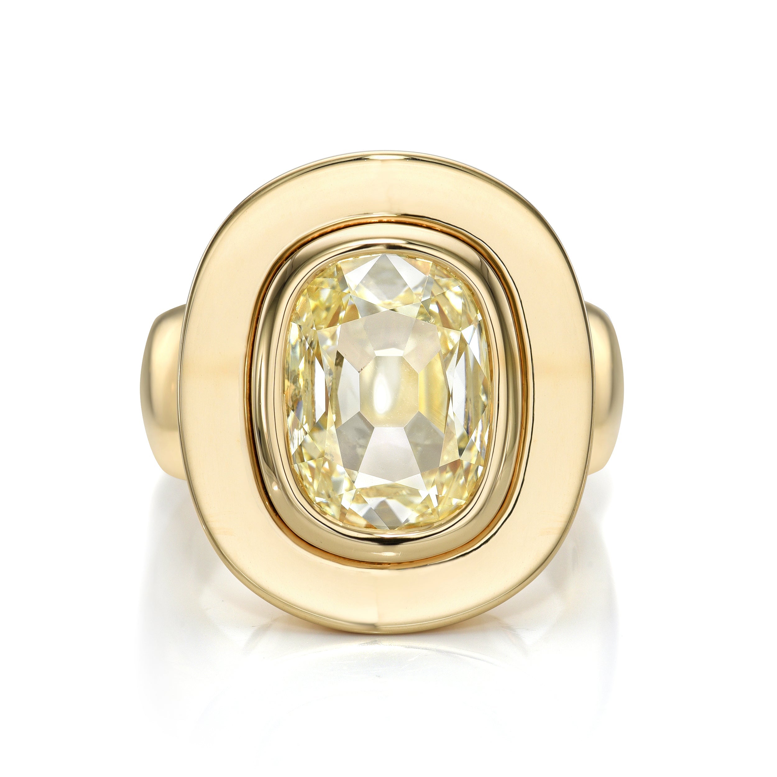 3.10ct U-V/SI1 GIA certified antique cushion cut diamond bezel set in a handcrafted 18K yellow gold mounting.