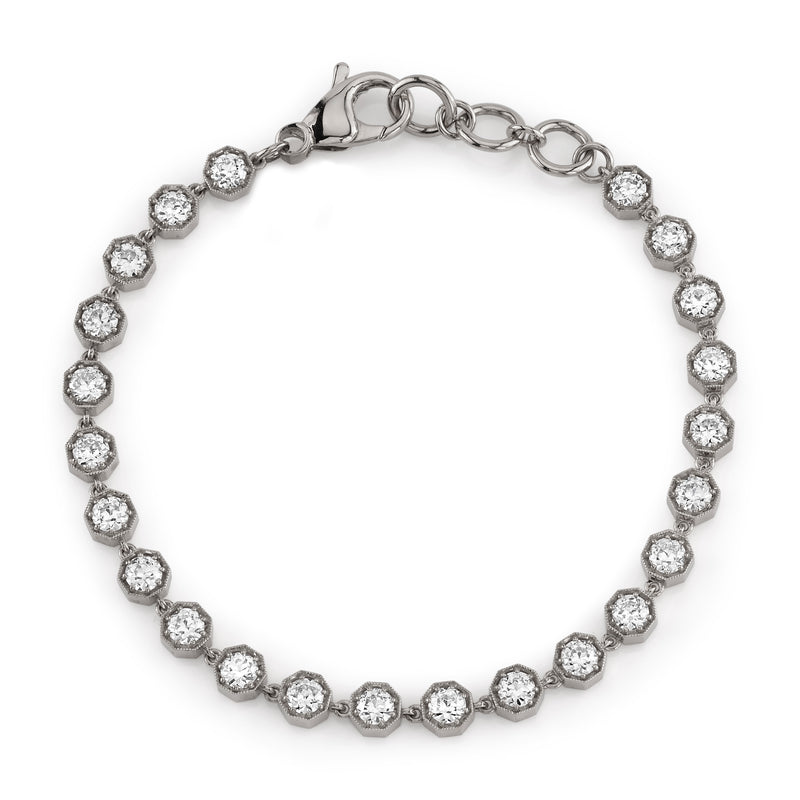 3.30ctw F-G/VS-SI old European cut diamonds set in a handcrafted platinum diamond tennis bracelet.