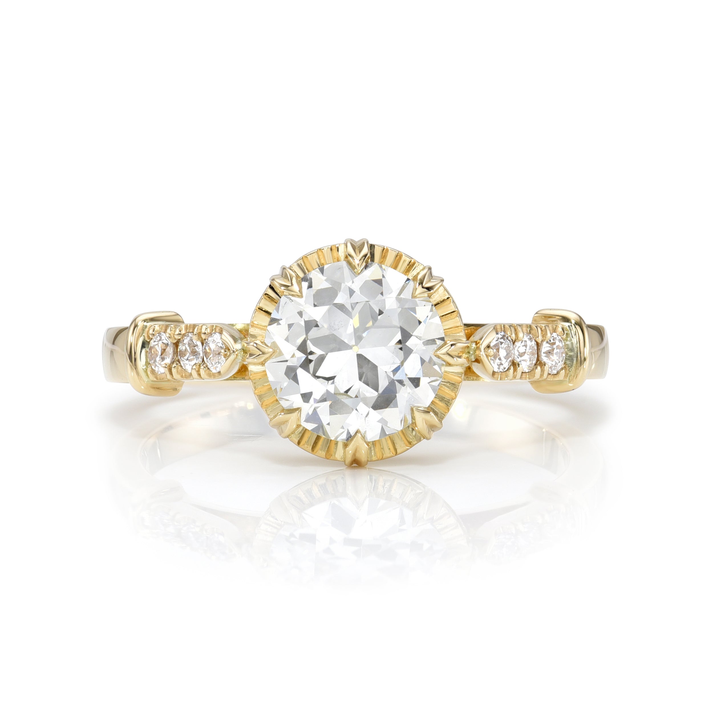 1.15ct M/SI1 GIA certified old European cut diamond with 0.12ctw old European cut accent diamonds prong set in a handcrafted 18K yellow gold mounting.