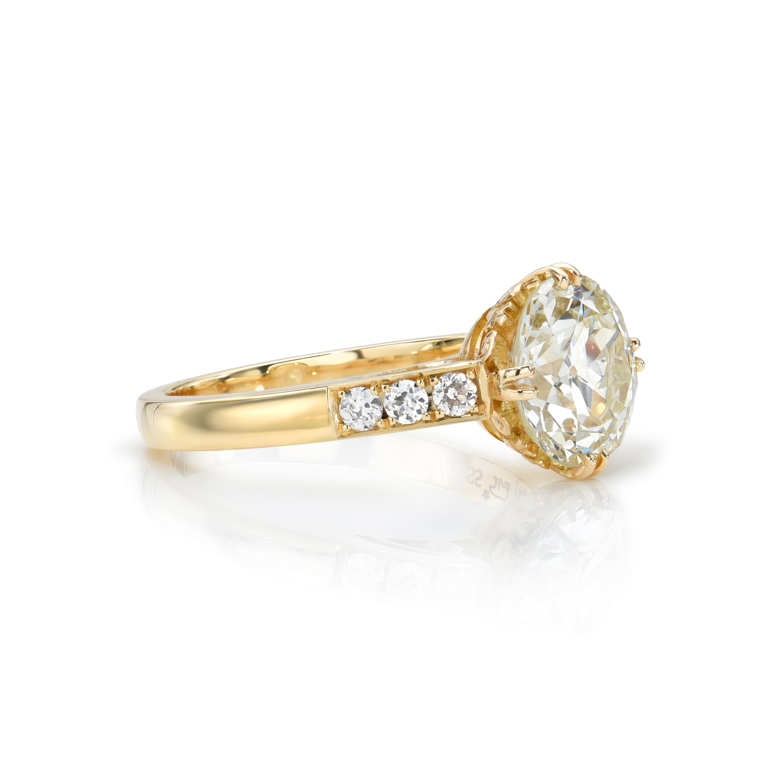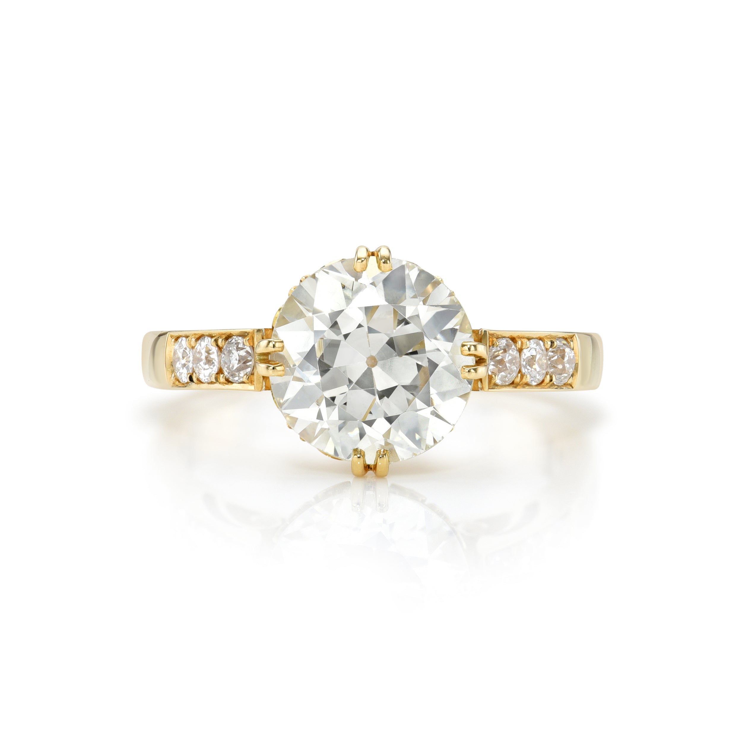 2.39ct O-P/VS2 GIA certified old European cut diamond set with 0.20ctw old European cut accent diamonds prong set in a handcrafted 18K yellow gold mounting.