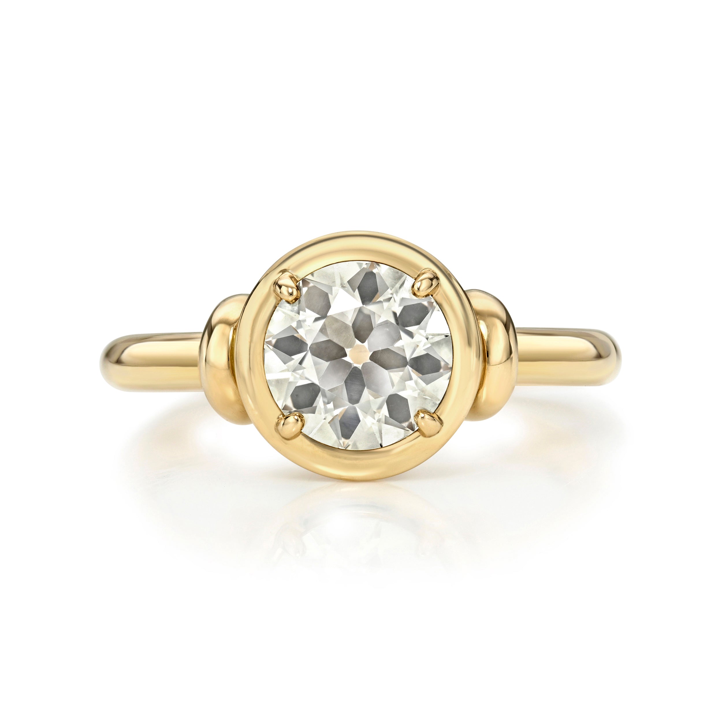The 19th century brought about techniques that advanced the diamond cutting industry and thus, the old European cut diamond was born. With 58 facets, a small table, high crown angle, circular shape, and open culet, the old European cut diamond became the precursor to the modern round diamonds that we see today. Our vintage old European cut diamonds, cut primarily in the 1920s and 1930s, are used in many of our designs, from larger center stones to small, pave set diamonds.