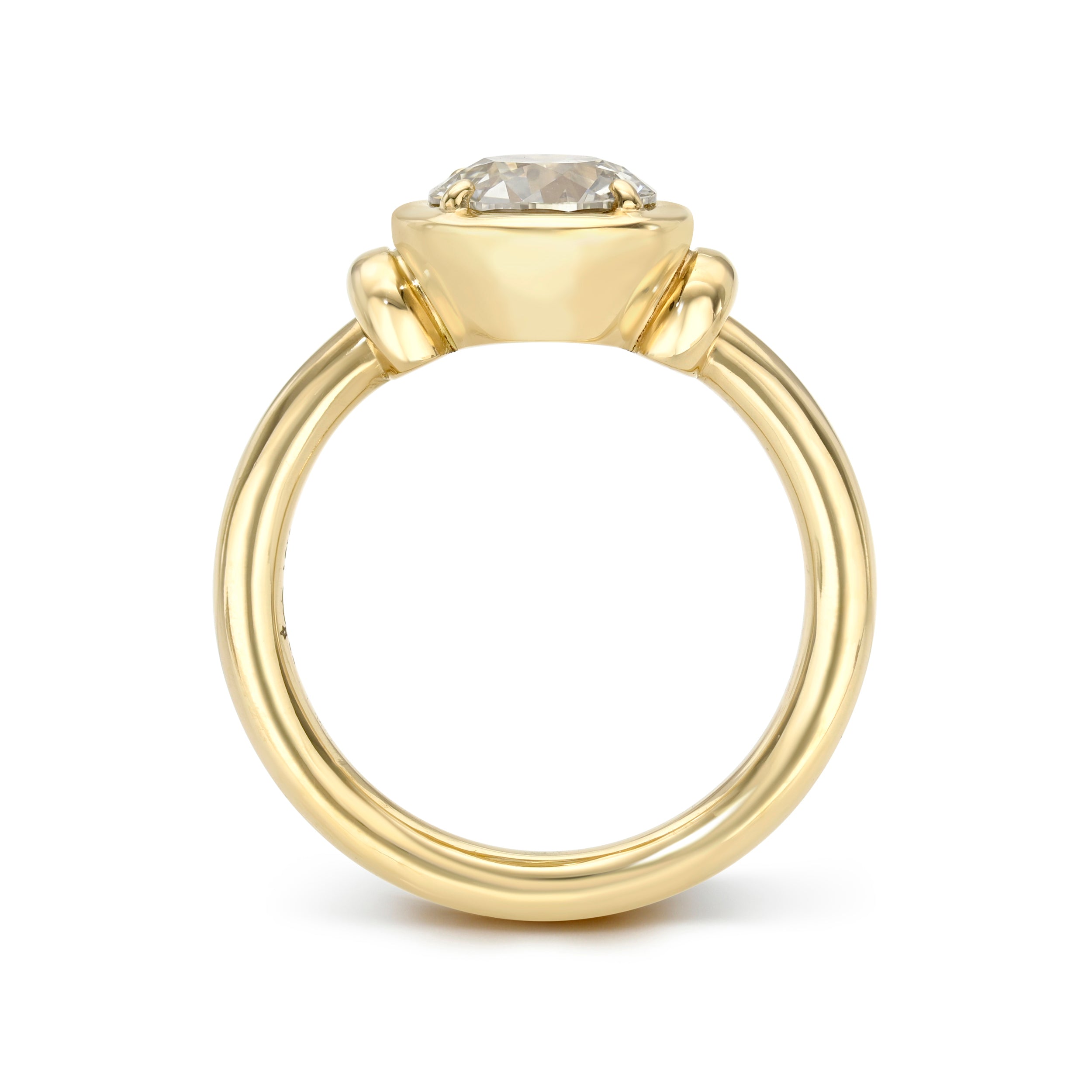 If the 4 Cs of Diamond Quality are Cut, Color, Clarity, and Carat Weight, then antique diamonds offer a 5th C: Character. With a unique play of light due to their hand-cut nature, each antique diamond is truly one-of-a-kind. The appeal of these rare diamonds lies in their broad facet patterns, their unique silhouettes, and their ability to dazzle in low and modern lighting conditions. Unlike their modern counterparts, which are cut with modern machinery and to exacting specifications, there are only a finite number of antique diamonds available, making them scarce and highly sought after. Repurposing antique diamonds also reduces environmental impact, which is something we feel very strongly about.