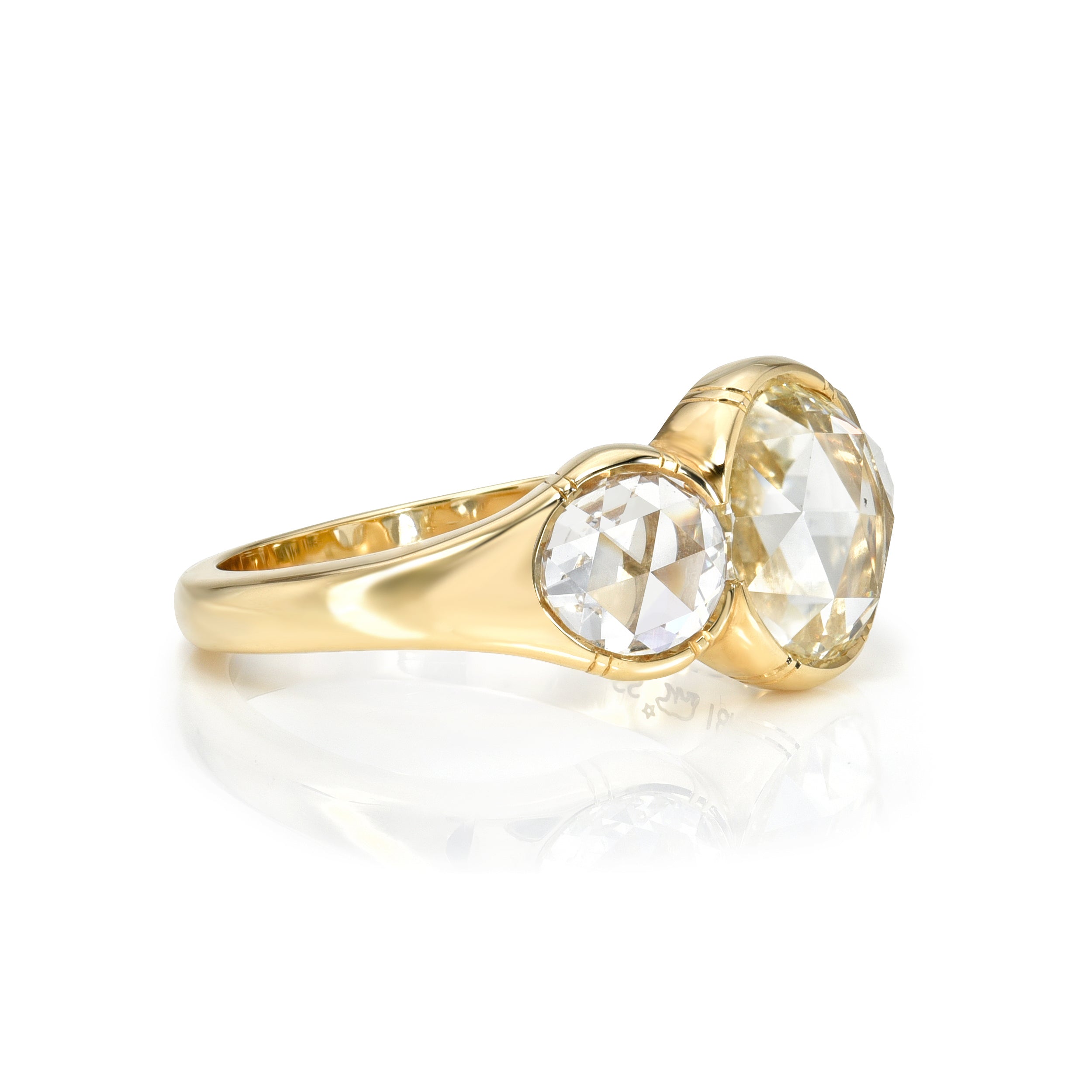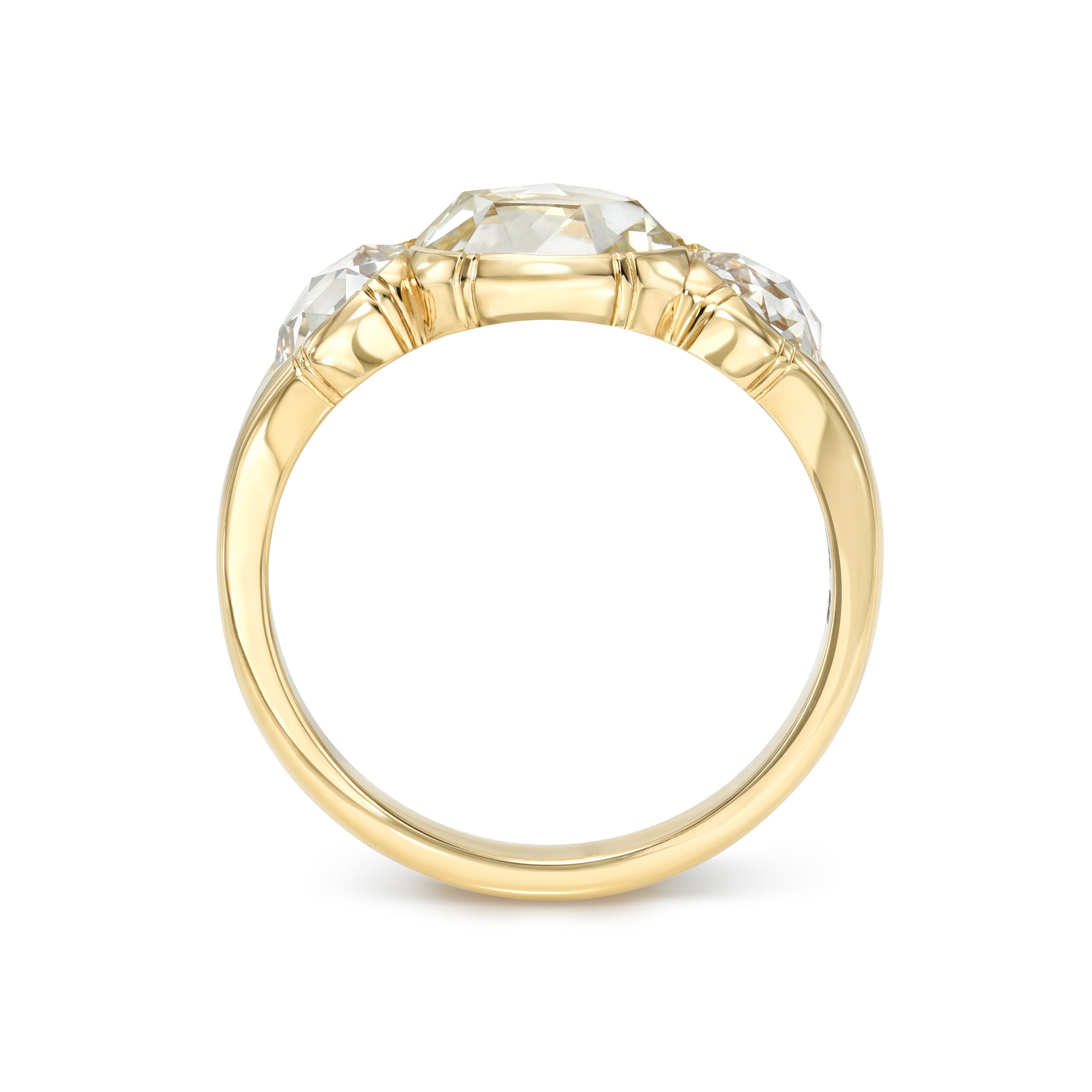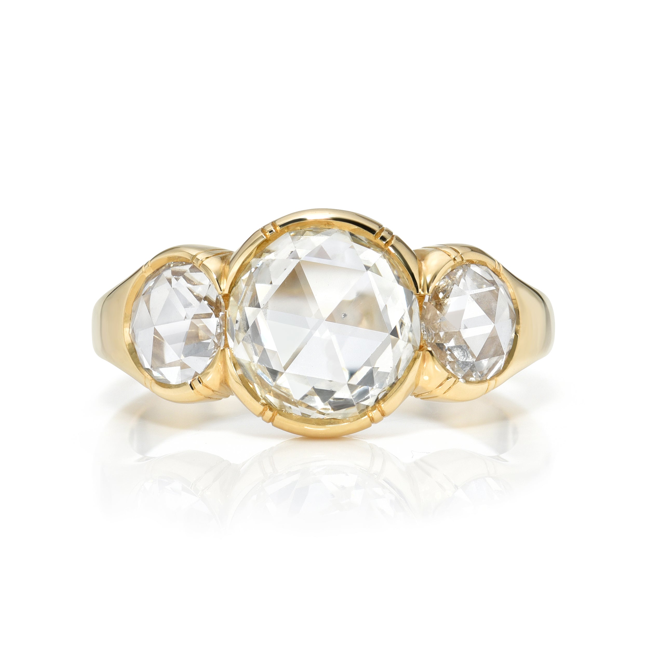 1.88ct M/SI1 GIA certified rose cut diamond with 0.80ctw rose cut accent diamonds bezel set in a handcrafted 18K yellow gold mounting.