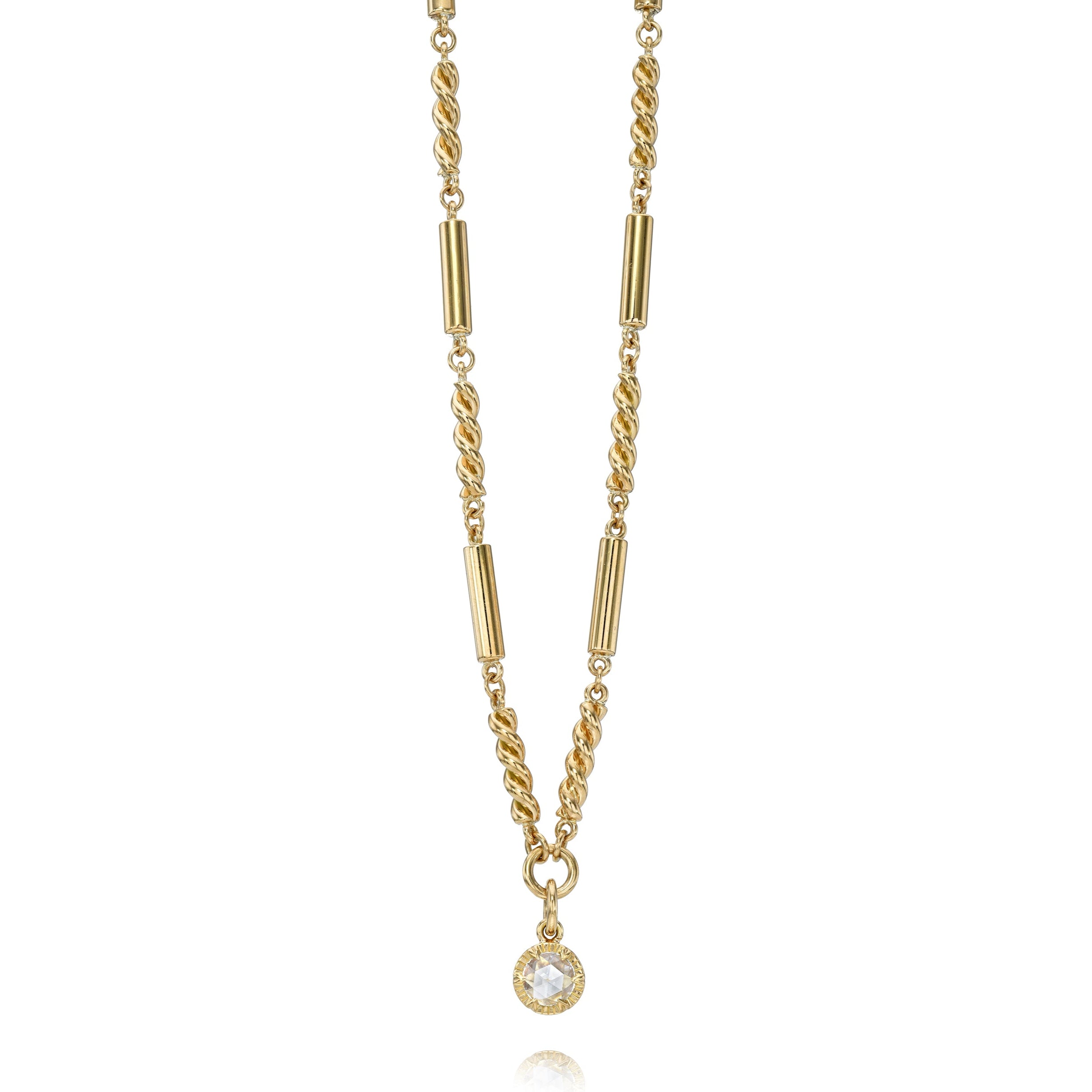 Originating in India in the 18th century, rose cut diamonds dazzled in the candle-lit courts of the Mughals. Flat bottomed with a domed, faceted top, rose cut diamonds can have any silhouette; it is the triangular “rose-like” facet pattern on the top of the diamond that distinguishes a rose cut from any other diamond shape. The beauty of a rose cut diamond is in the subtlety of its shine – much like light reflecting off the surface of water. Our designs incorporate both antique and mindfully sourced modern rose cut diamonds.