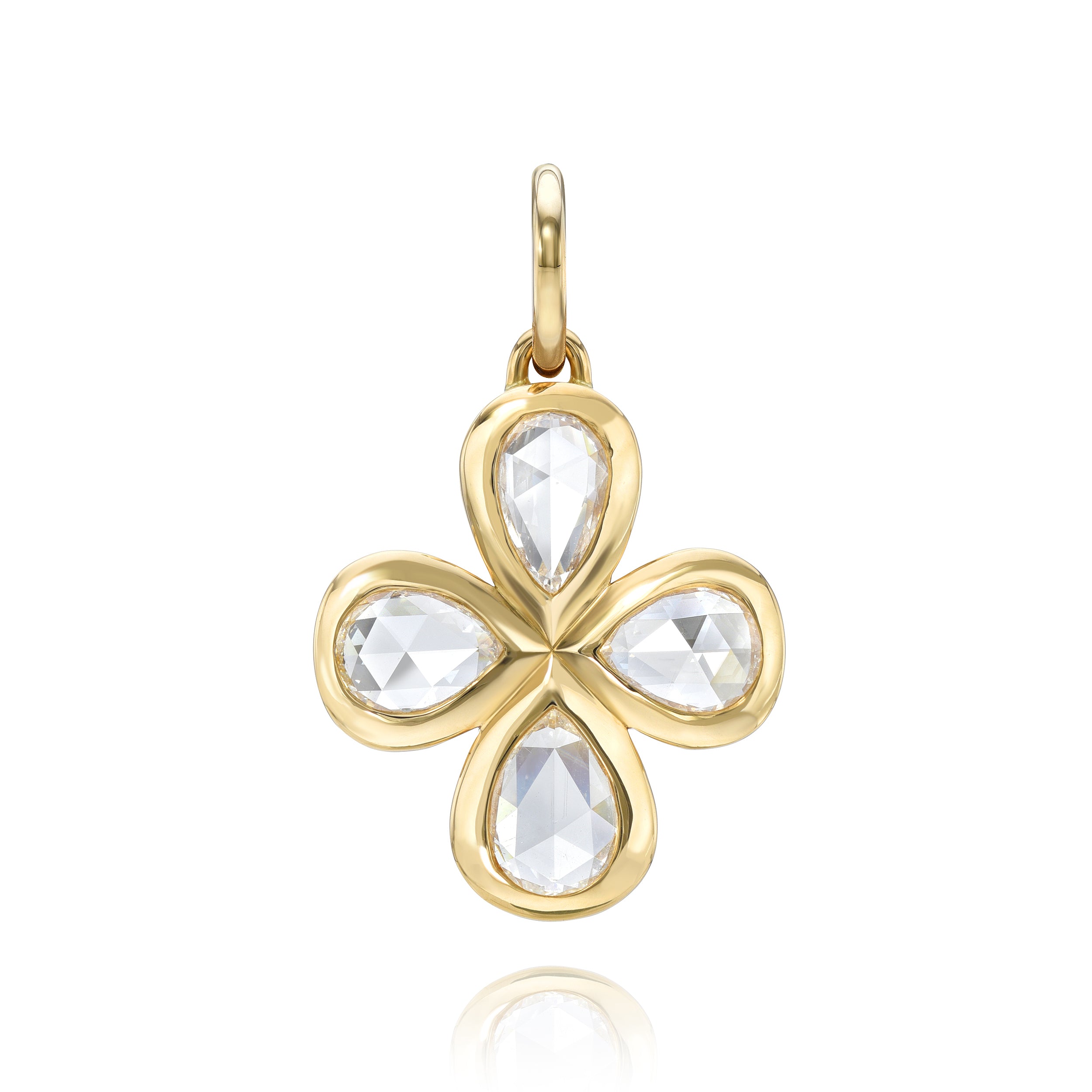 2.65ctw H-I/VS pear shaped rose cut diamonds bezel set in a handcrafted 18K yellow gold pendant.