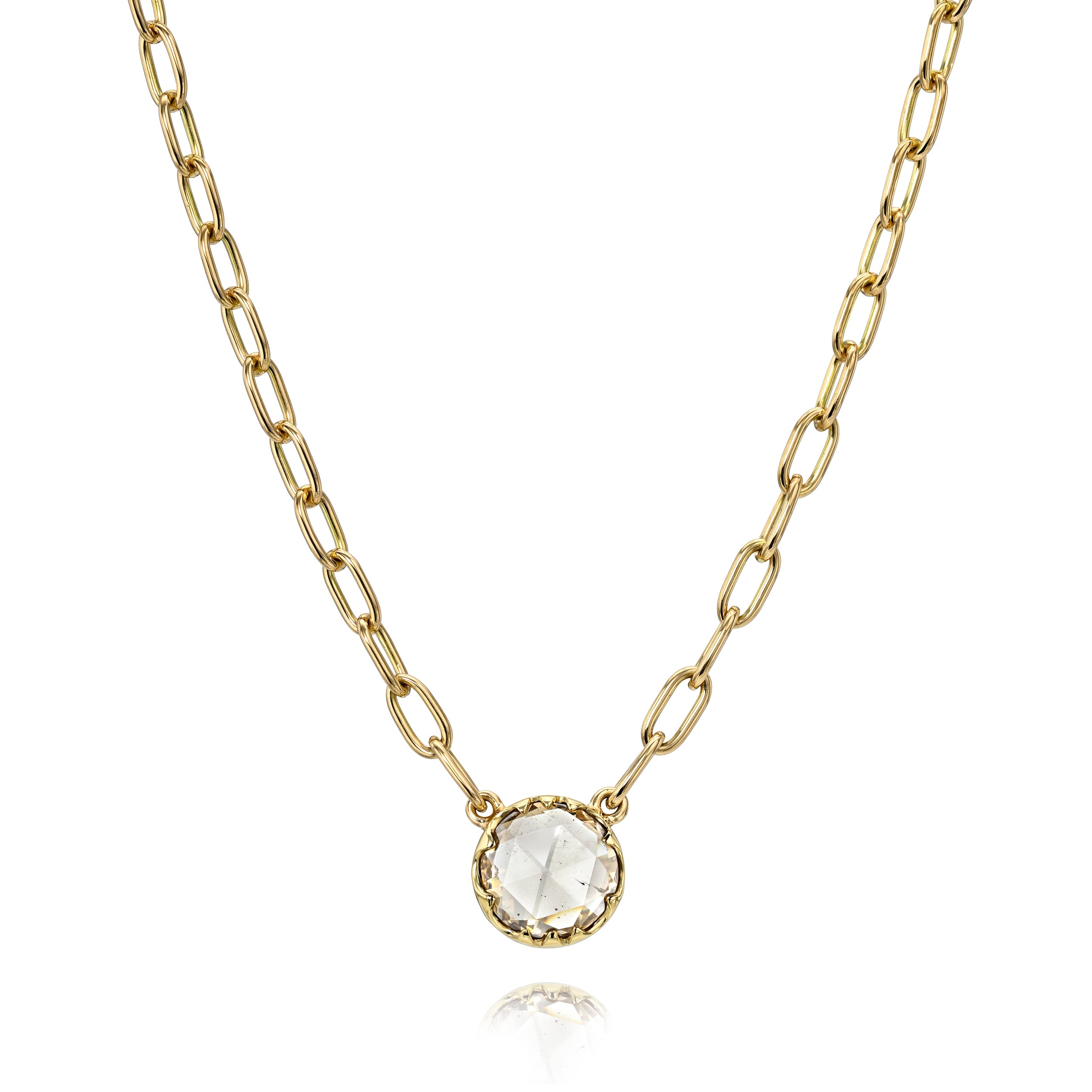 1.62ct Peach/Goldish Brown rose cut diamond set on our handcrafted 18K yellow gold Bond chain.