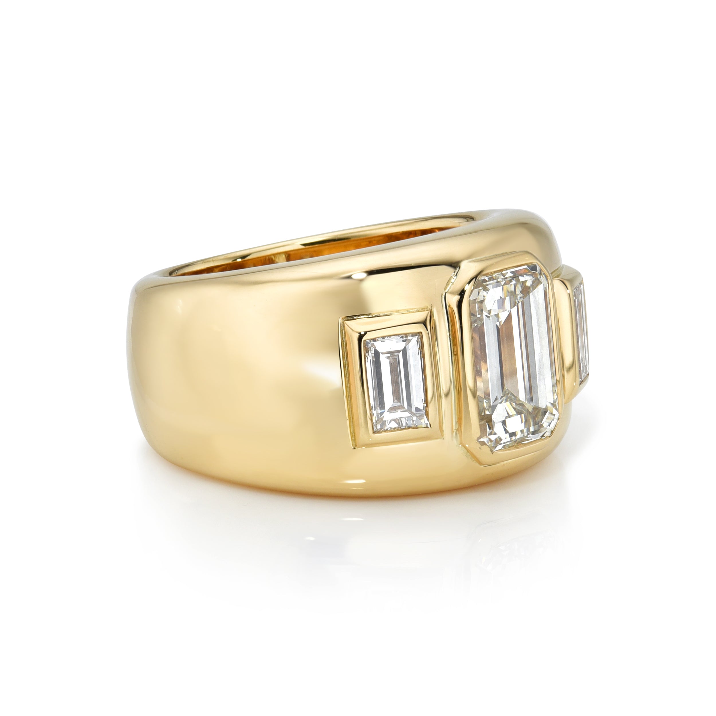 2.06ct L/VVS2 GIA certified emerald cut diamond with 0.62ctw baguette cut accent diamonds bezel set in a handcrafted 18K yellow gold mounting.