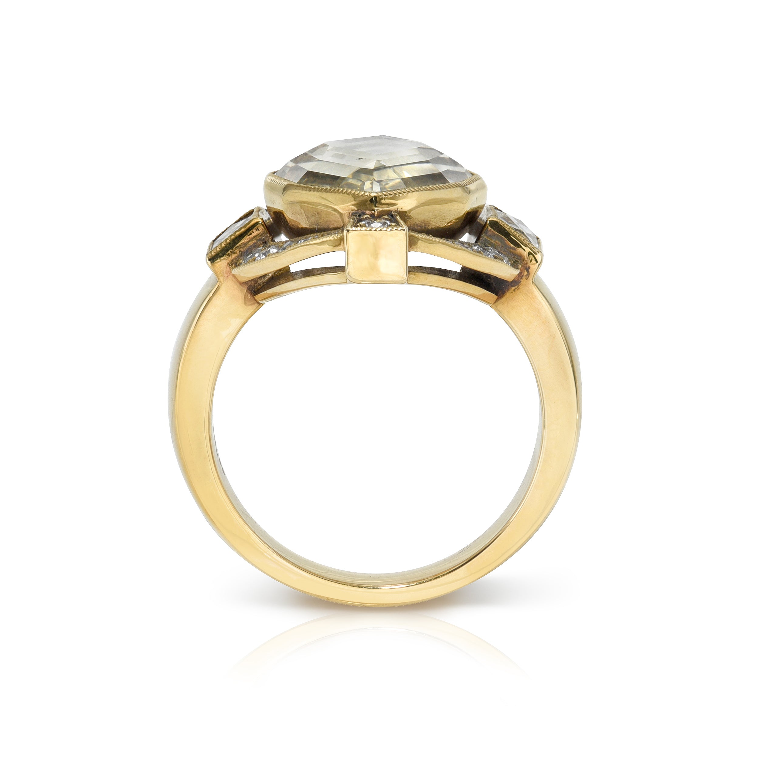 Antique oval, marquise, and pear-shaped diamonds are not too dissimilar to their modern counterparts, but what makes them unique is their broad facet patterns and open culets. Additionally, antique pear shape diamonds and marquise (or movals) have a softness to their shape where the diamond does not come to a perfect point – a direct result of the hand-cutting techniques of the 19th century.