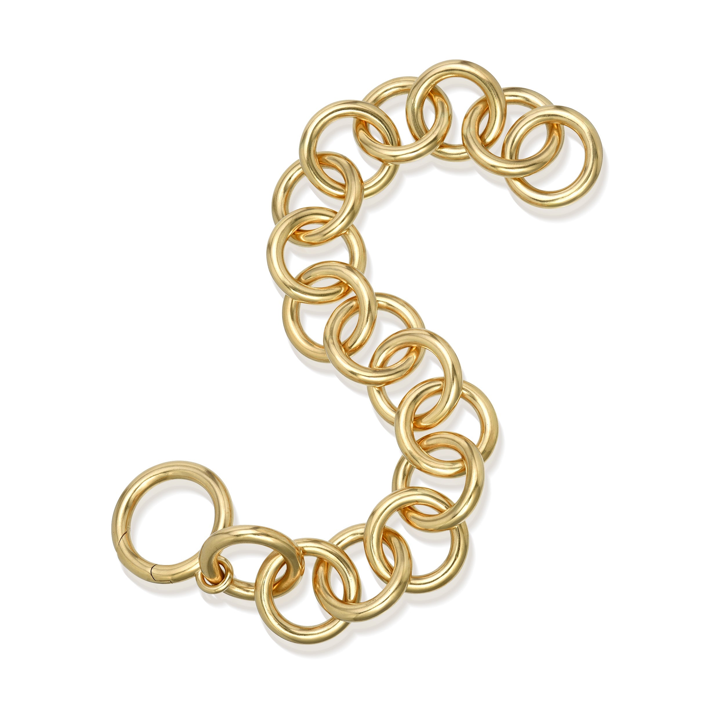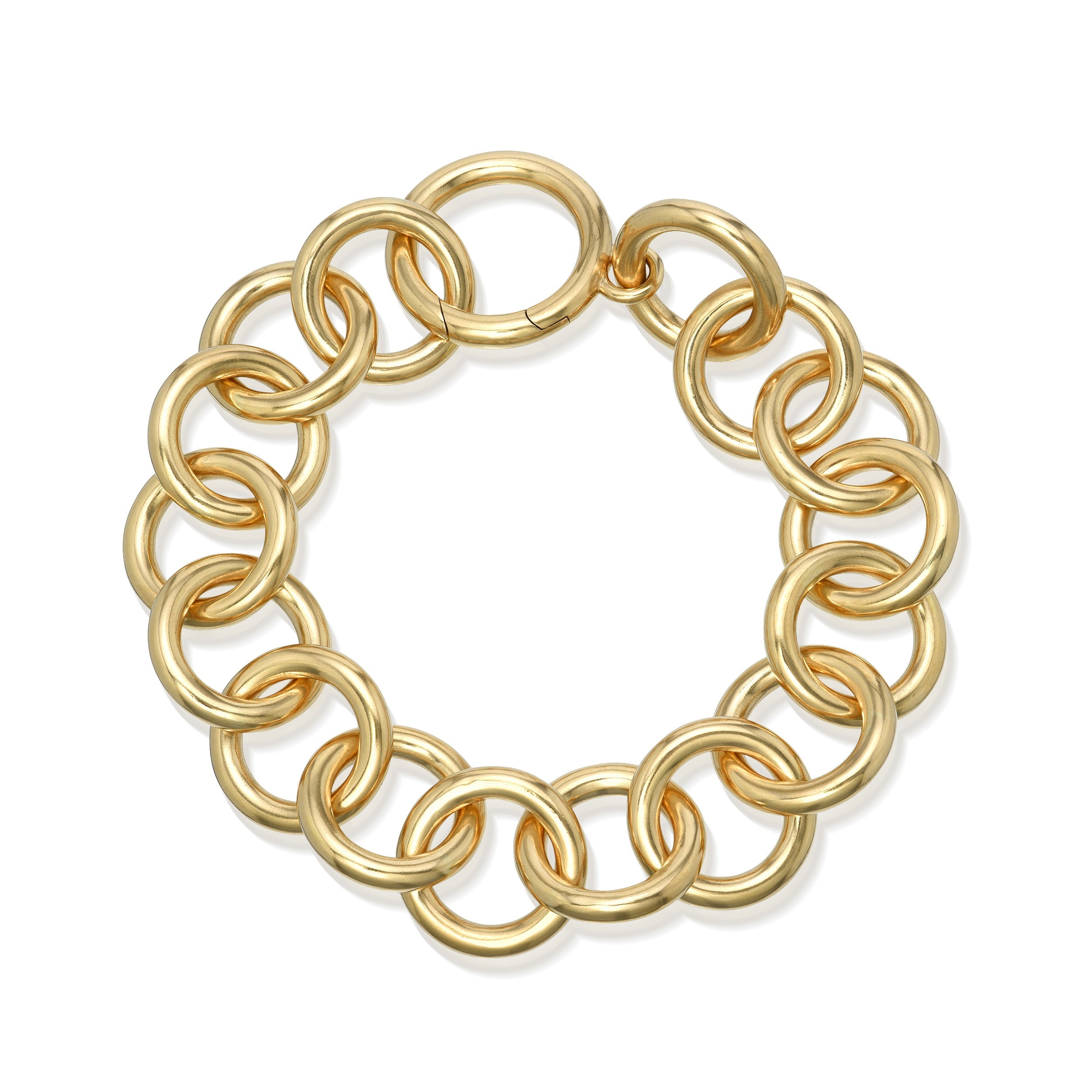 Handcrafted 18K yellow gold round link bracelet.