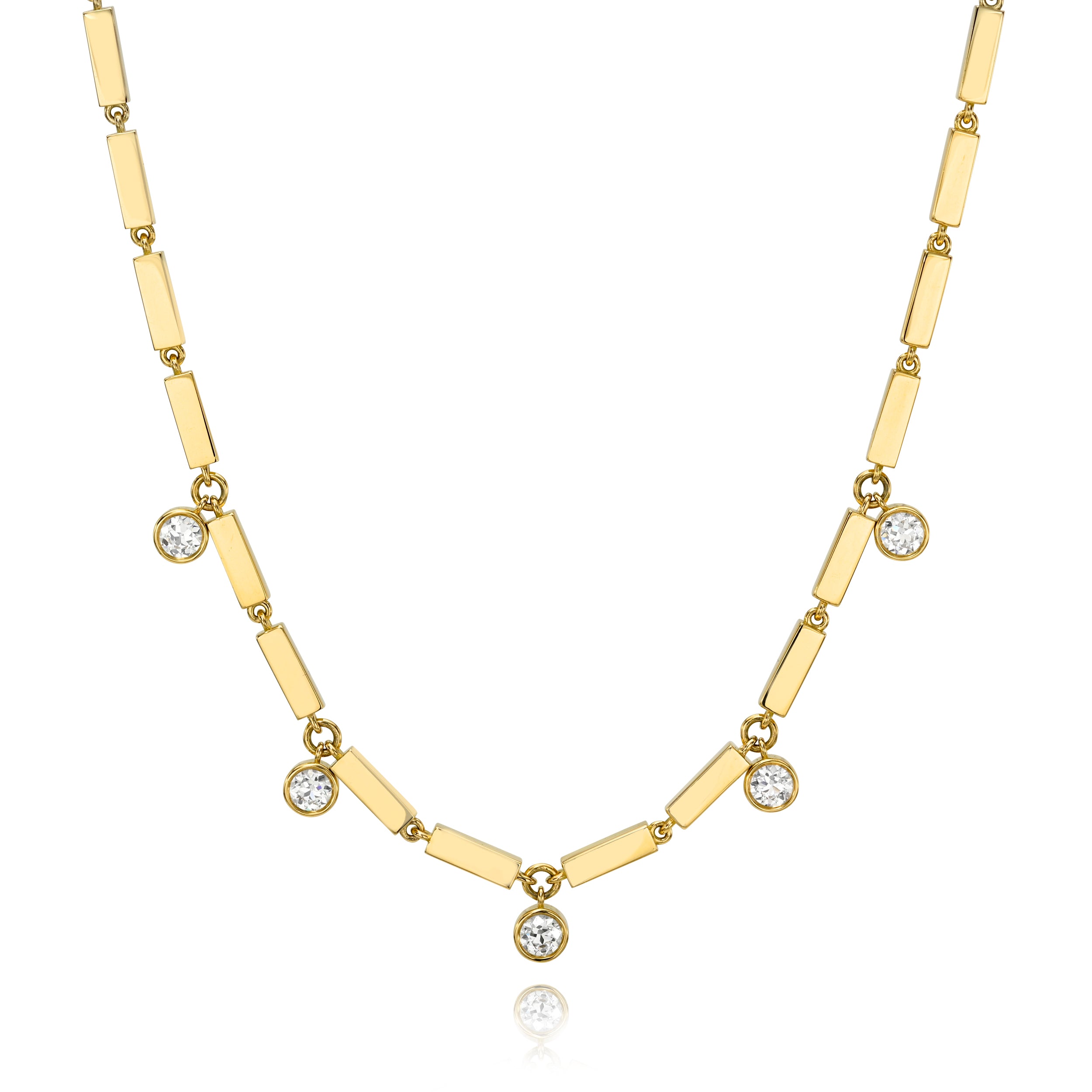 Approximately 1.50ctw H-I/VS-SI old European cut diamonds drop set on a handcrafted 18K yellow gold miniature take on our classic Giana Mini necklace.