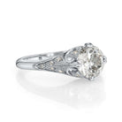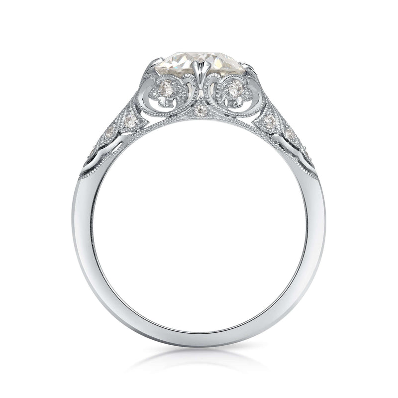 1.35ct J/VS1 GIA certified old European cut diamond with 0.10ctw old European cut accent diamonds set in a handcrafted platinum mounting.