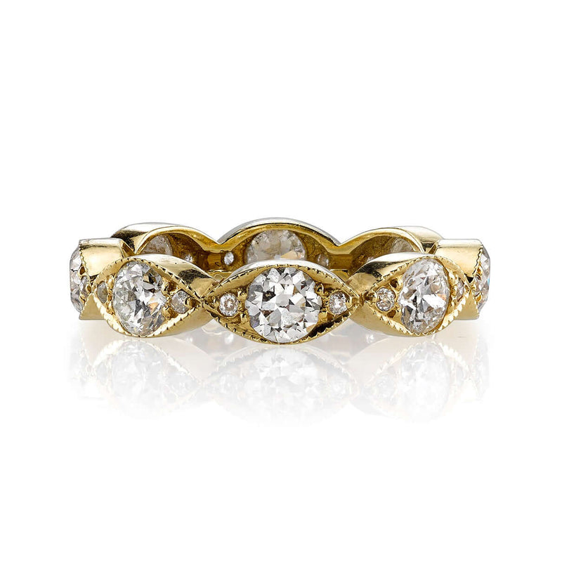 The 19th century brought about techniques that advanced the diamond cutting industry and thus, the old European cut diamond was born. With 58 facets, a small table, high crown angle, circular shape, and open culet, the old European cut diamond became the precursor to the modern round diamonds that we see today. Our vintage old European cut diamonds, cut primarily in the 1920s and 1930s, are used in many of our designs, from larger center stones to small, pave set diamonds.