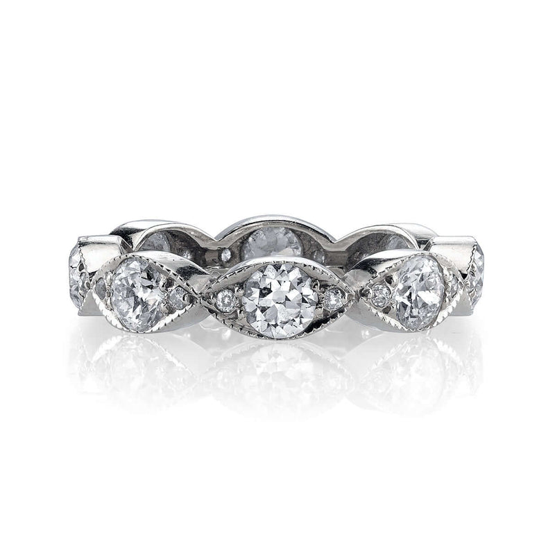 Approximately 1.40ctw old European cut diamonds set in a handcrafted marquise shaped eternity band.