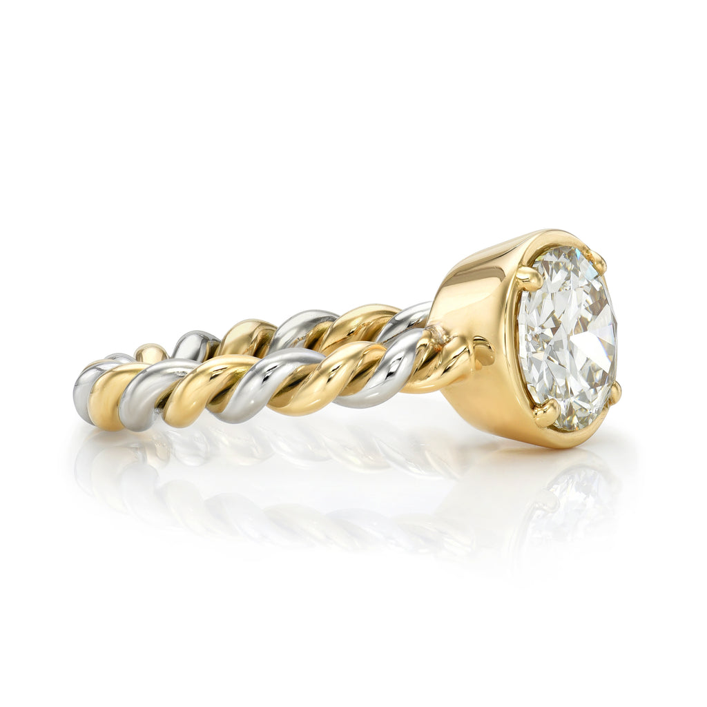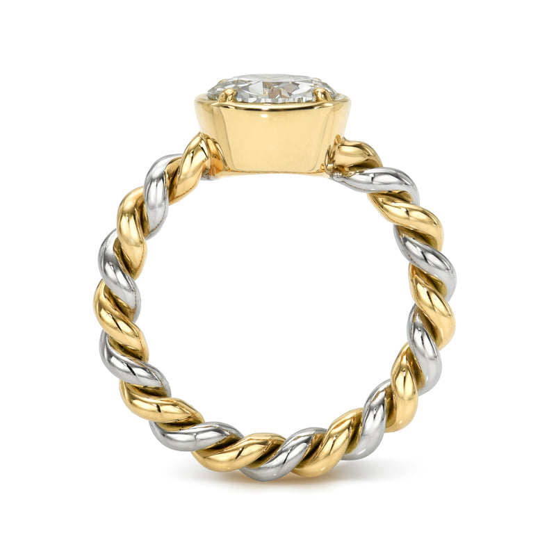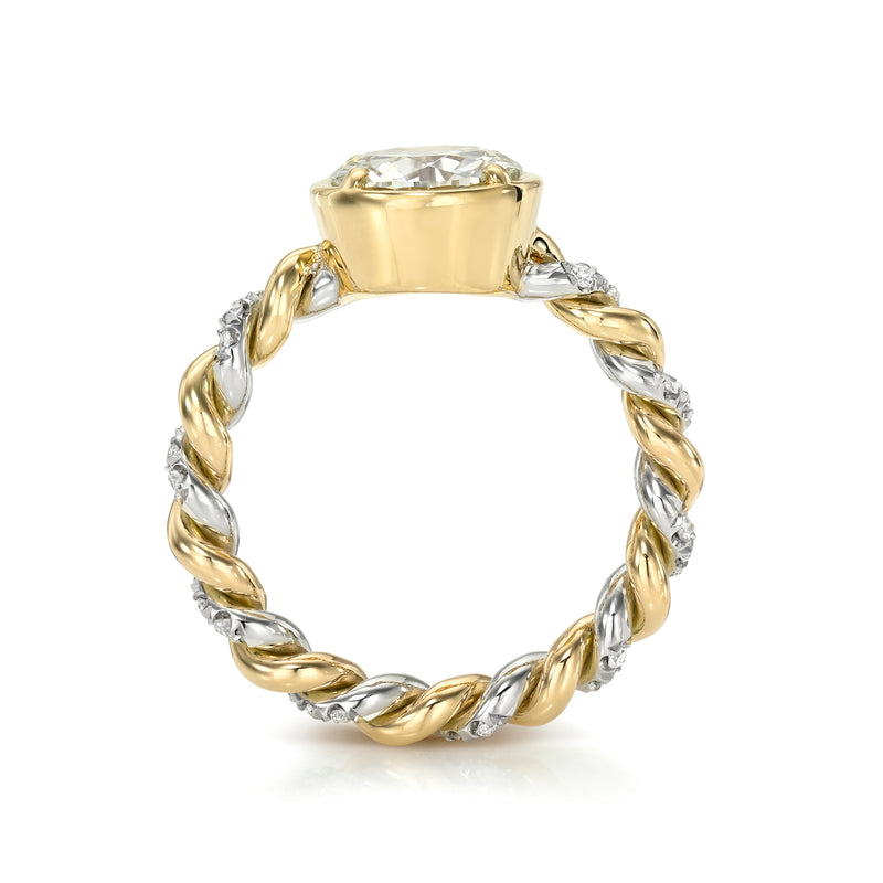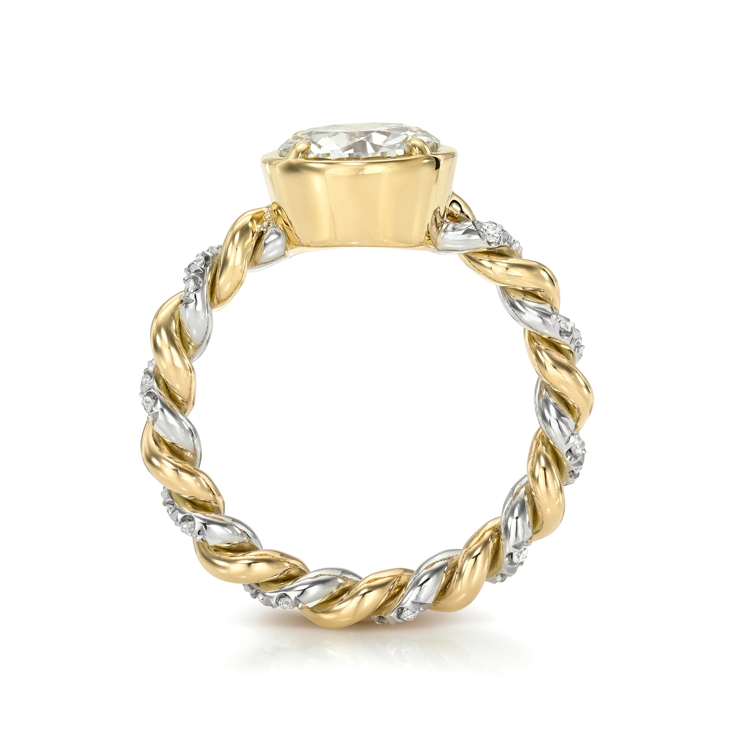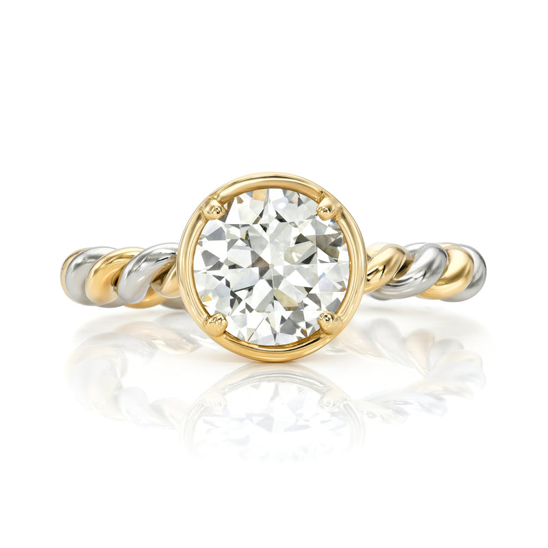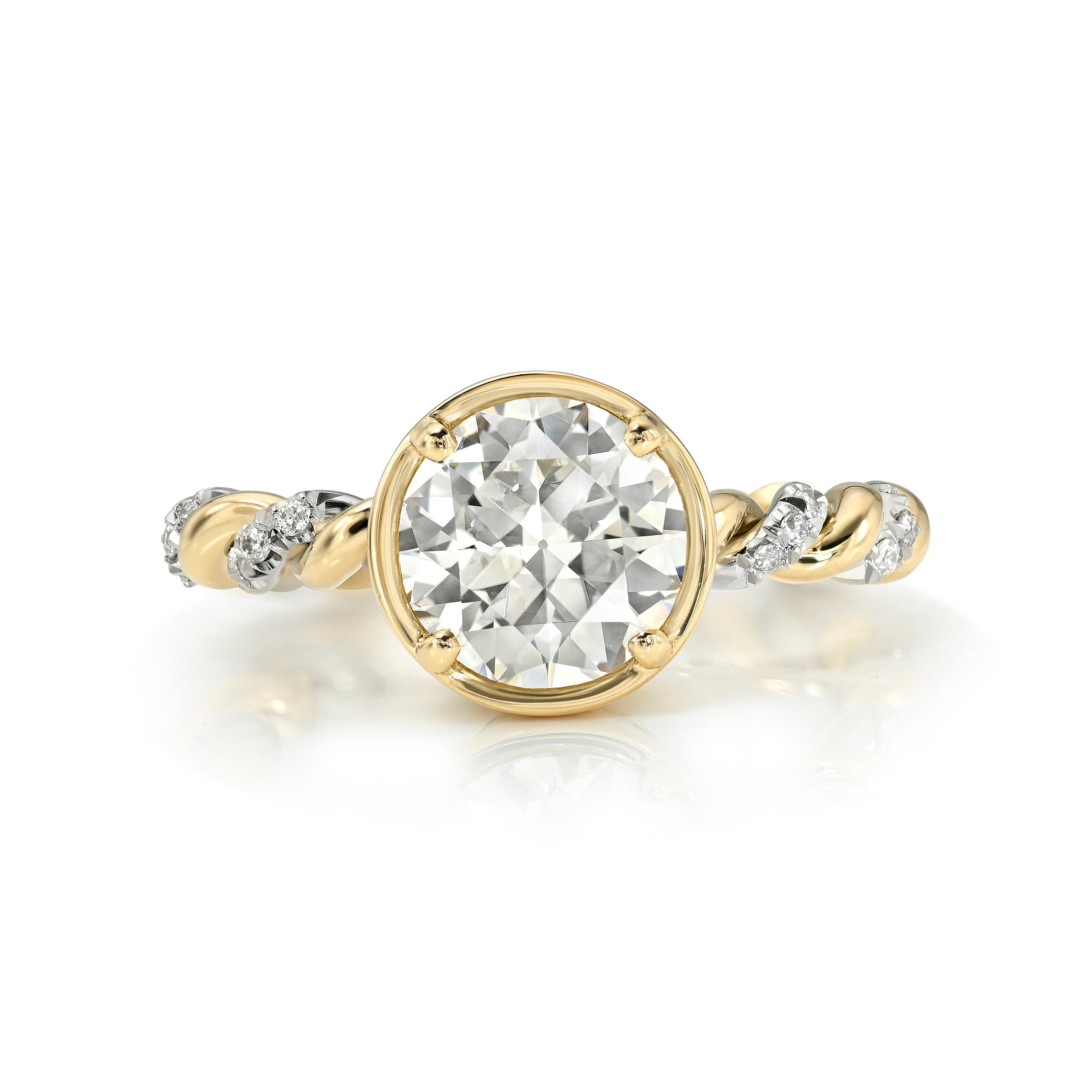 1.81ct K/VS1 GIA certified old European cut diamond prong set in a handcrafted twisted 18K yellow gold and platinum mounting featuring 0.18ctw old European cut accent diamonds.