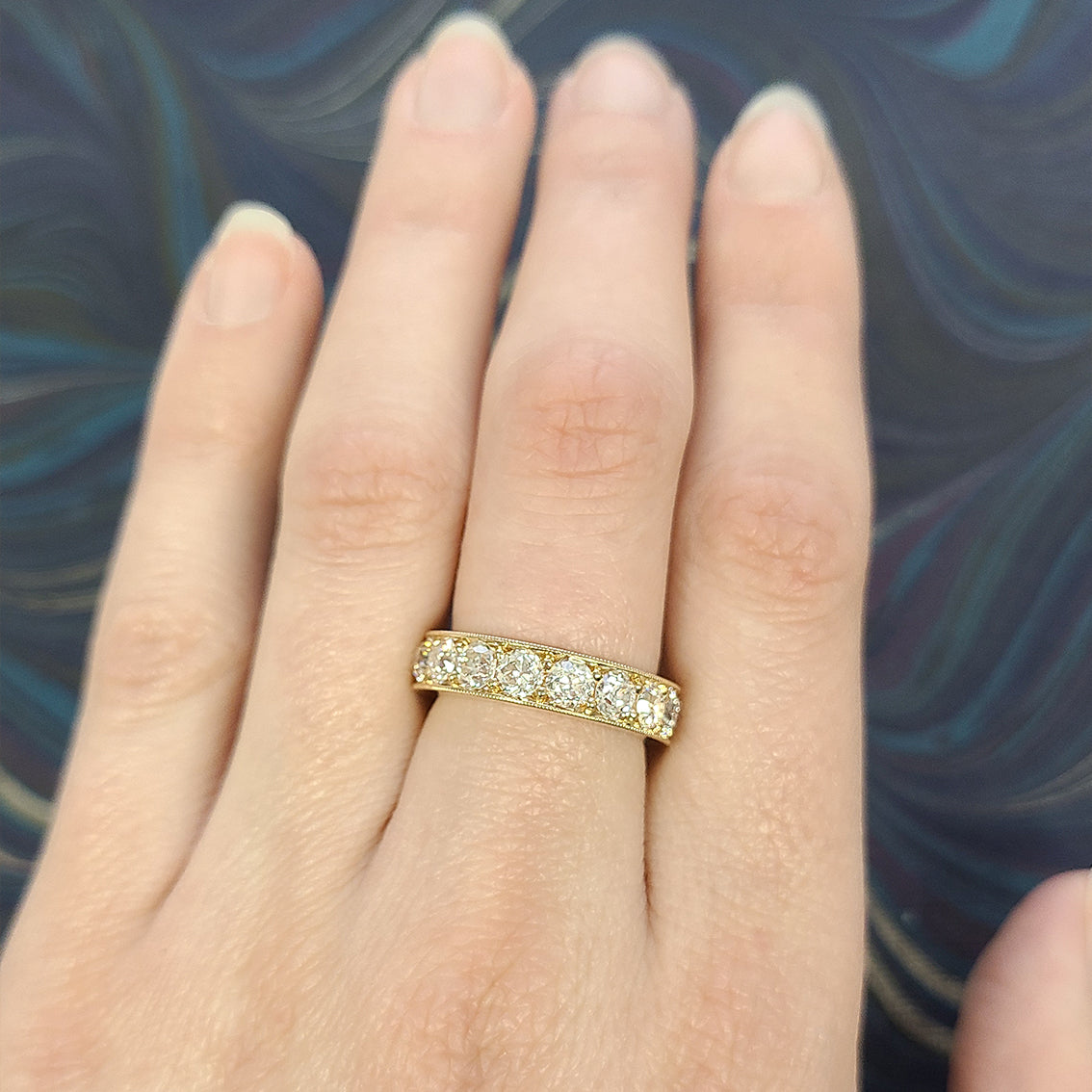 Approximately 3.30-3.80ctw G-H/VS old European cut diamonds pavé set in a handcrafted eternity band.