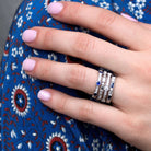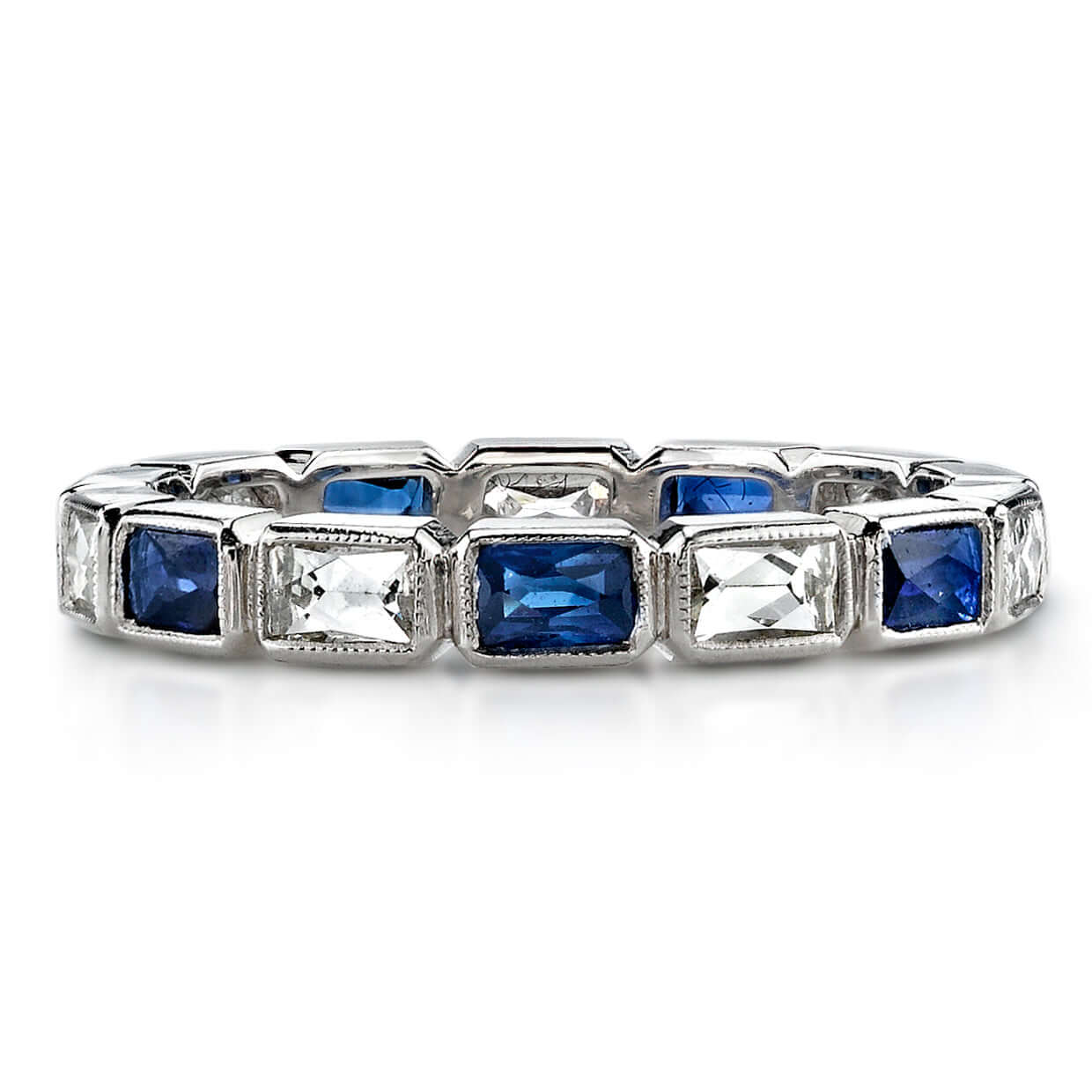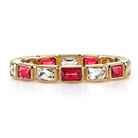 Approximately 0.80ctw G-H/VS French cut diamonds and 1.10ctw French cut gemstones bezel set in a handcrafted eternity band.