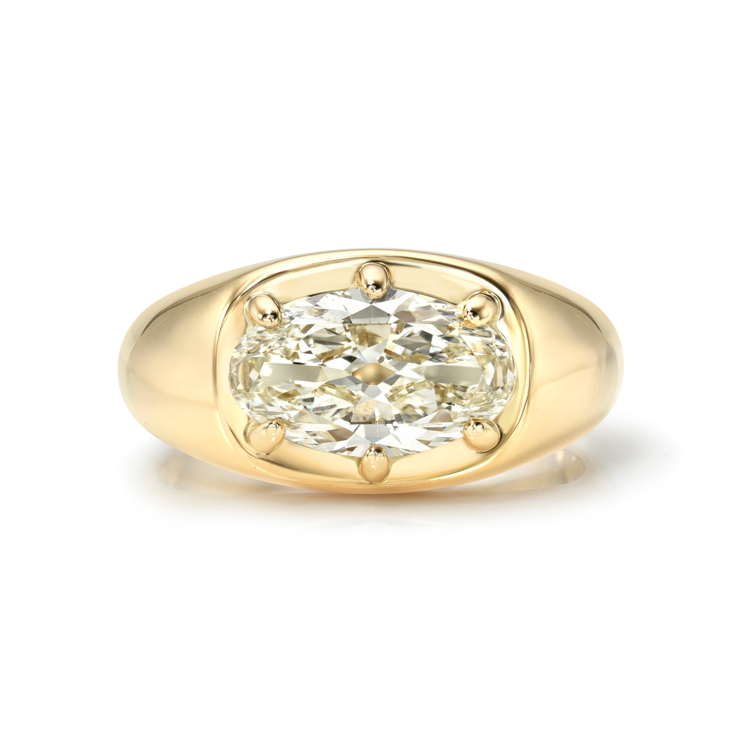 If the 4 Cs of Diamond Quality are Cut, Color, Clarity, and Carat Weight, then antique diamonds offer a 5th C: Character. With a unique play of light due to their hand-cut nature, each antique diamond is truly one-of-a-kind. The appeal of these rare diamonds lies in their broad facet patterns, their unique silhouettes, and their ability to dazzle in low and modern lighting conditions. Unlike their modern counterparts, which are cut with modern machinery and to exacting specifications, there are only a finite number of antique diamonds available, making them scarce and highly sought after. Repurposing antique diamonds also reduces environmental impact, which is something we feel very strongly about.
