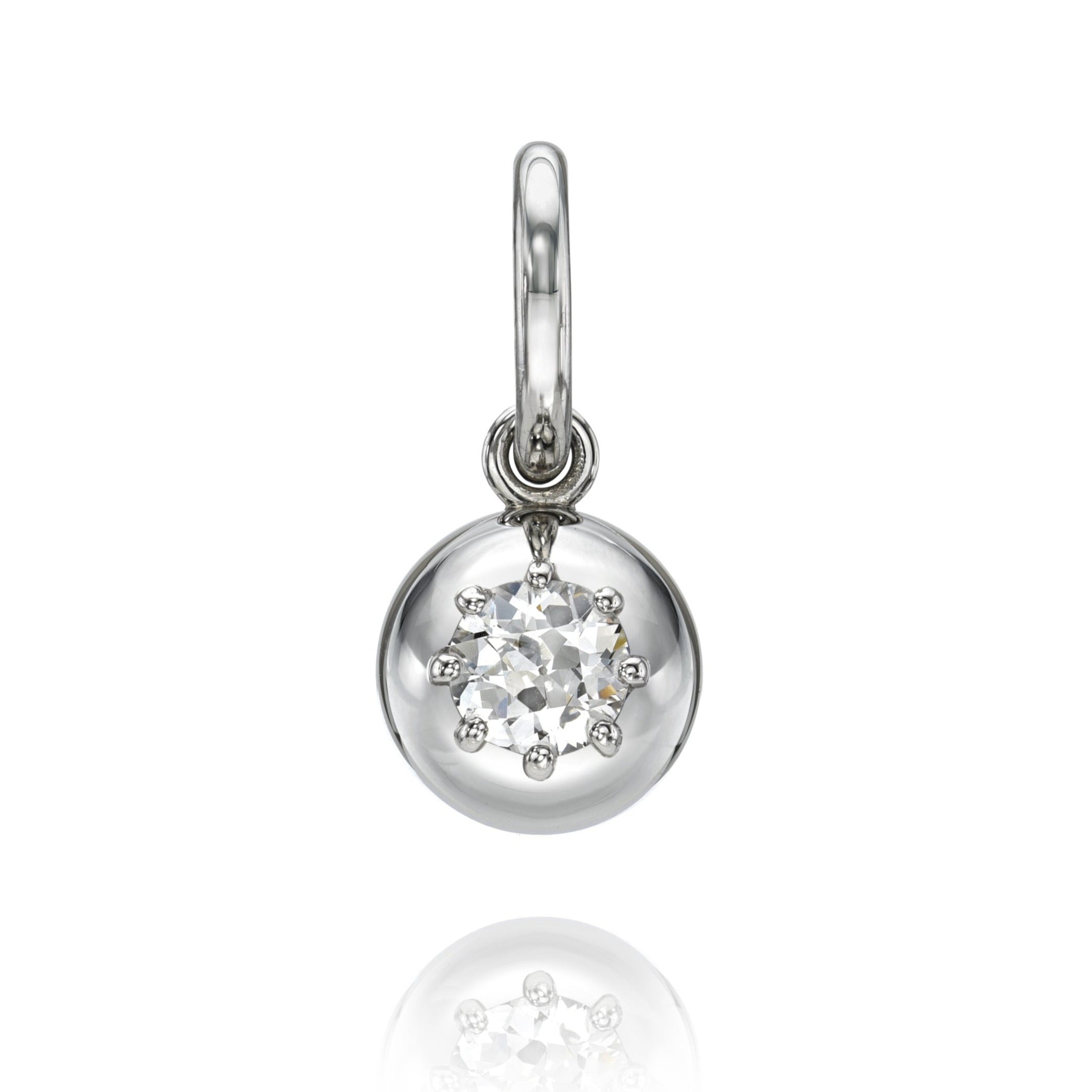 0.57ct J/SI2 GIA certified old European cut diamond prong set in a handcrafted platinum sphere shaped mounting.
