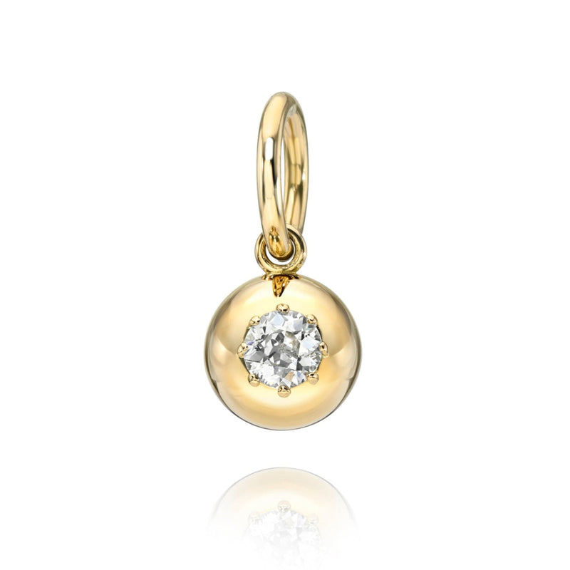 0.43ct H/I1 old European cut diamond prong set in a handcrafted 18K yellow gold sphere shaped pendant.