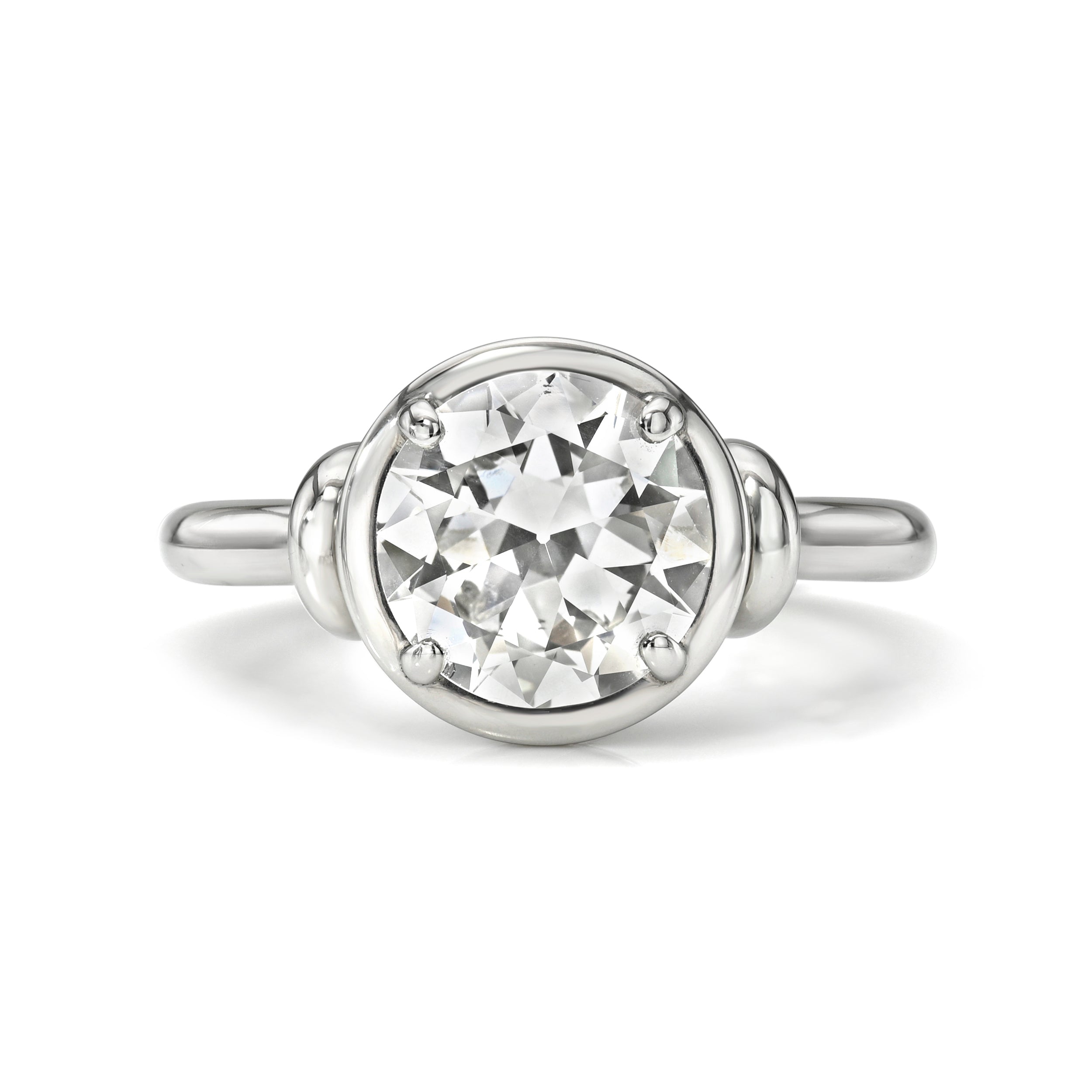The 19th century brought about techniques that advanced the diamond cutting industry and thus, the old European cut diamond was born. With 58 facets, a small table, high crown angle, circular shape, and open culet, the old European cut diamond became the precursor to the modern round diamonds that we see today. Our vintage old European cut diamonds, cut primarily in the 1920s and 1930s, are used in many of our designs, from larger center stones to small, pave set diamonds.