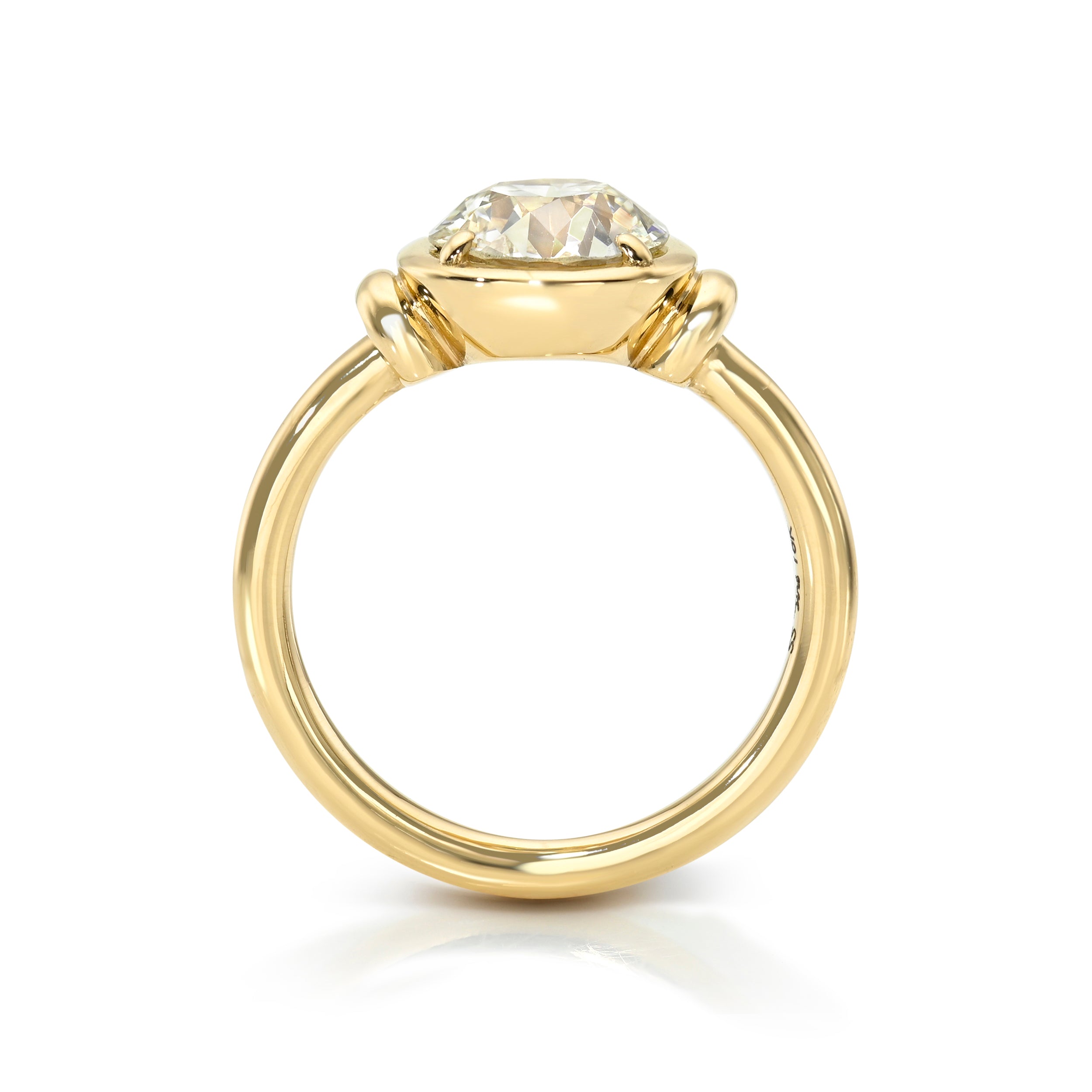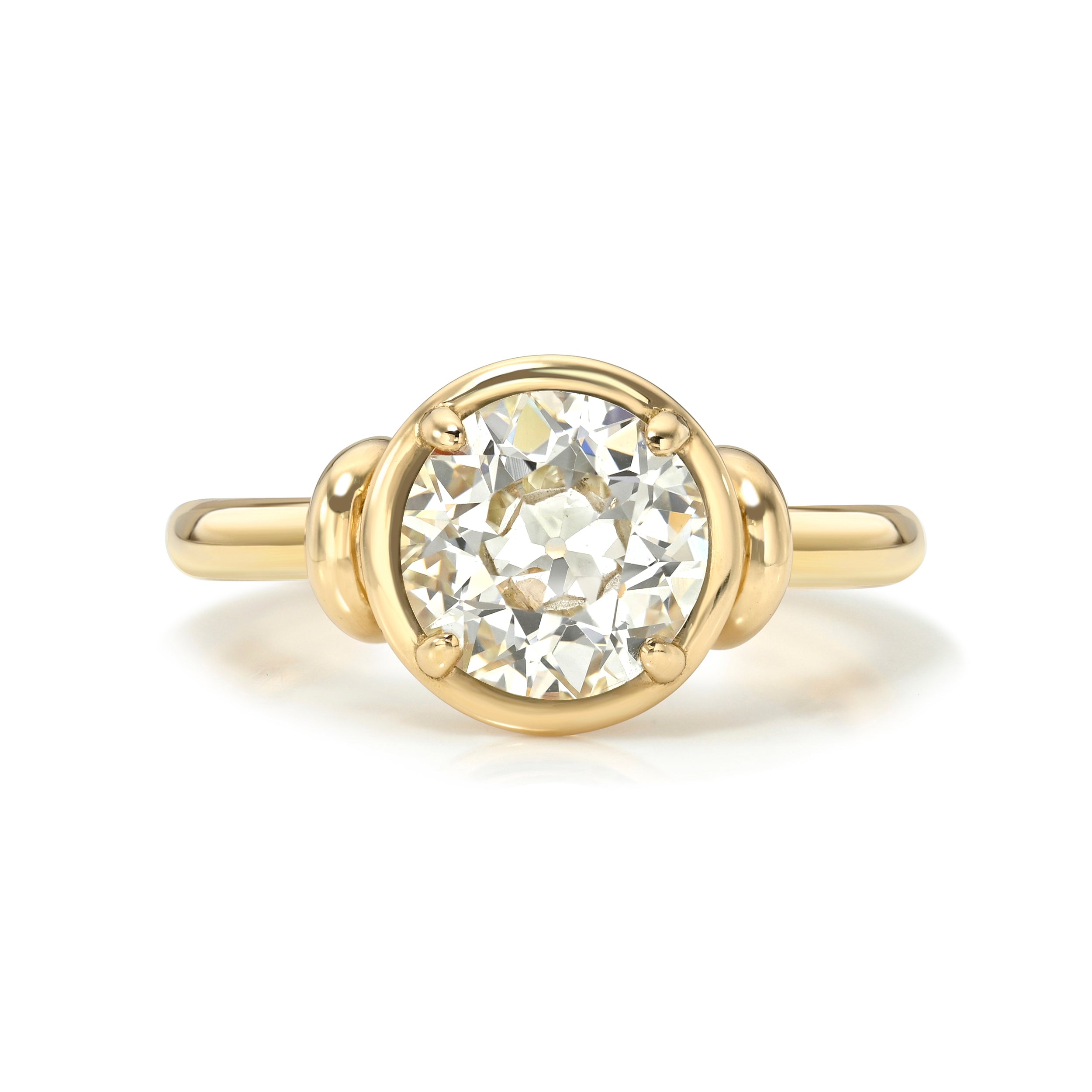 1.80ct L/SI2 GIA certified old European cut diamond prong set in a handcrafted 18K yellow gold mounting.
