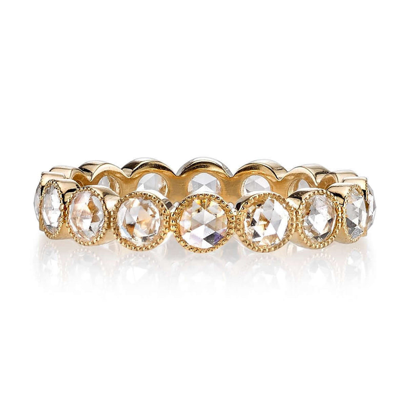 Approximately 1.20ctw G-H/VS-SI rose cut diamonds bezel set in a handcrafted eternity band.