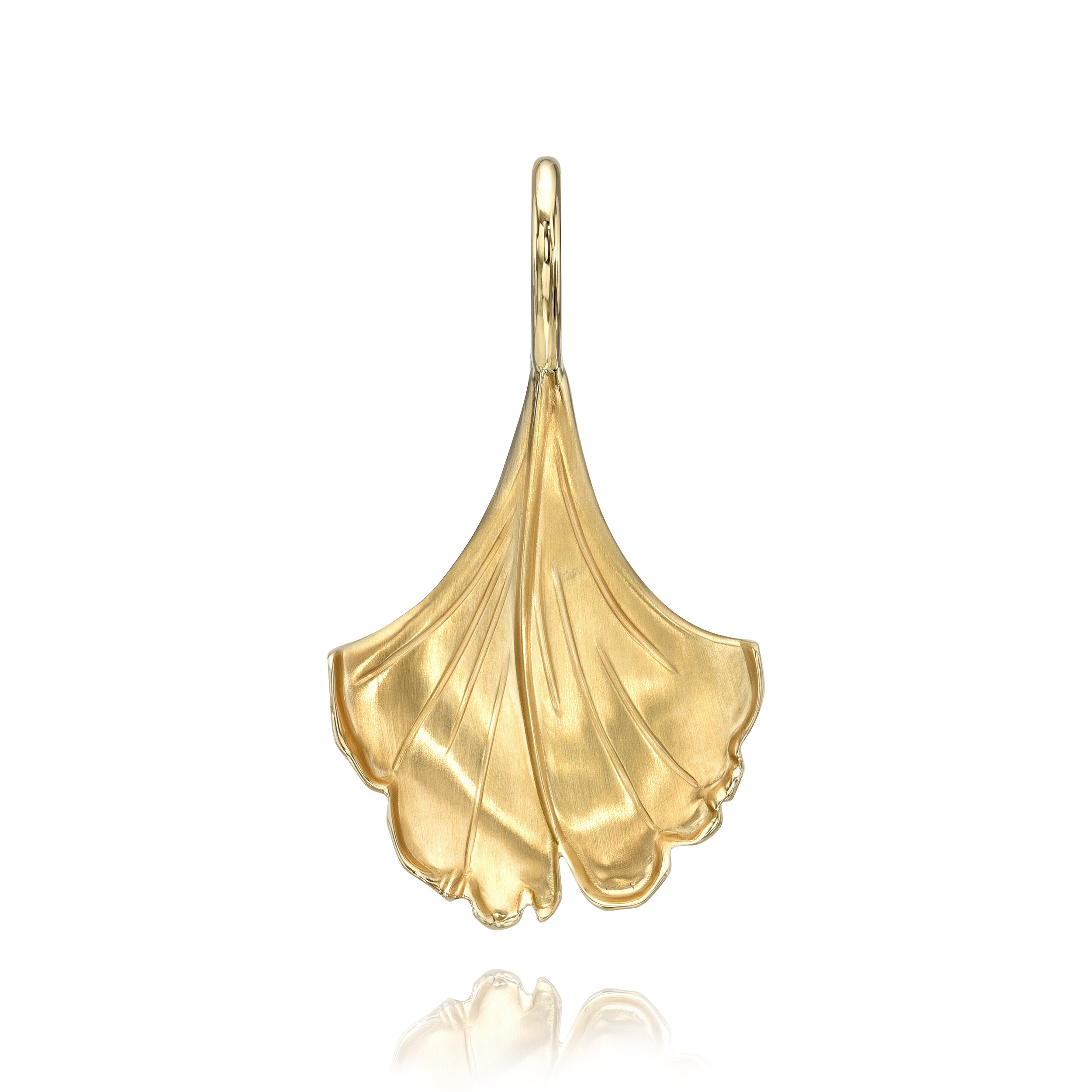 Handcrafted 18K yellow gold gingko leaf shaped pendant.