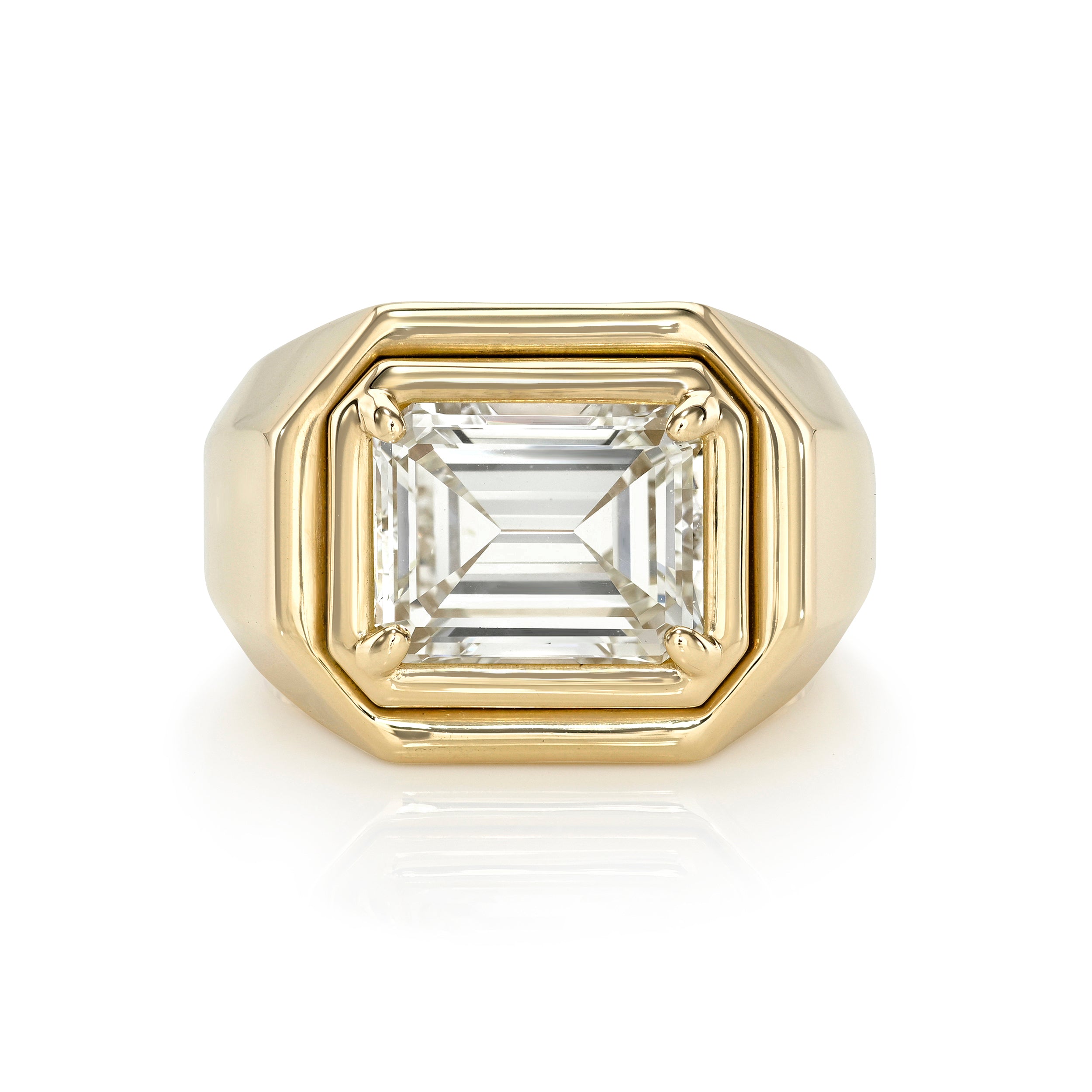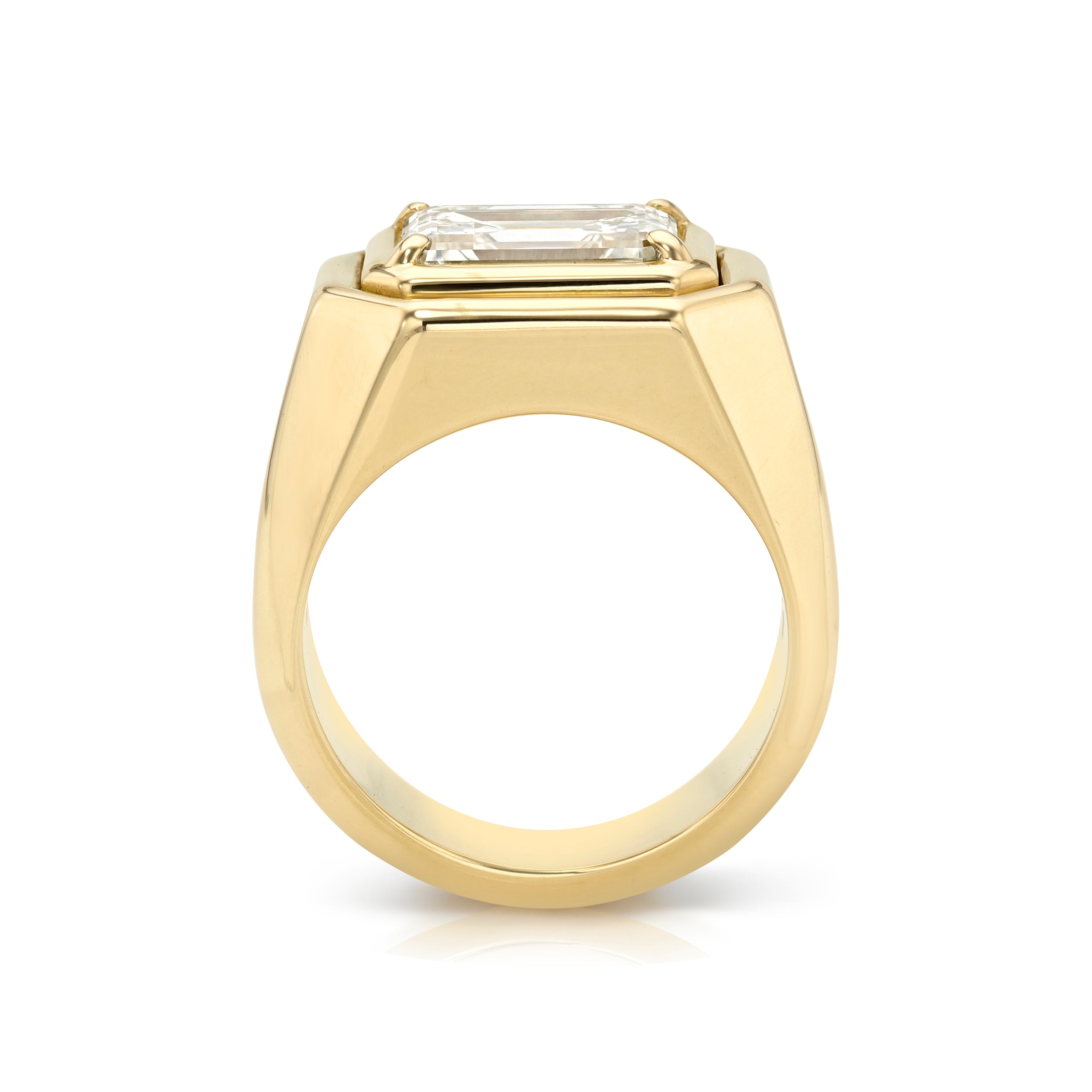 2.82ct M/VVS2 GIA certified emerald cut diamond prong set in a handcrafted 18K yellow gold mounting.