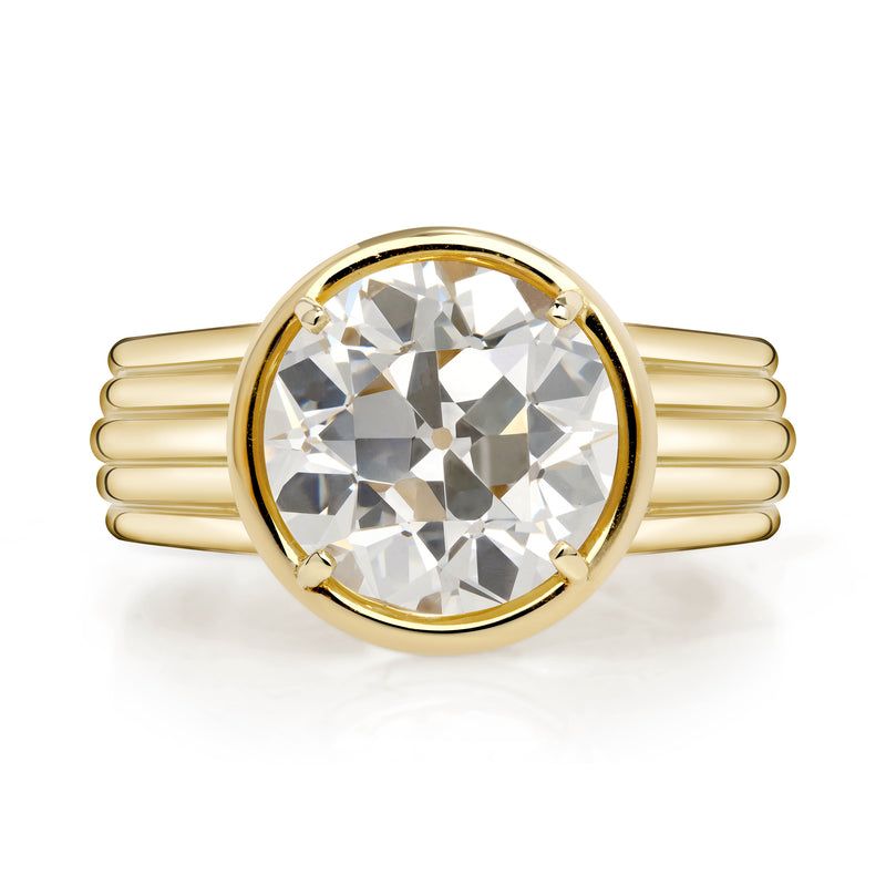 The 19th century brought about techniques that advanced the diamond cutting industry and thus, the old European cut diamond was born. With 58 facets, a small table, high crown angle, circular shape, and open culet, the old European cut diamond became the precursor to the modern round diamonds that we see today. Our vintage old European cut diamonds, cut primarily in the 1920s and 1930s, are used in many of our designs, from larger center stones to small, pave set diamonds.