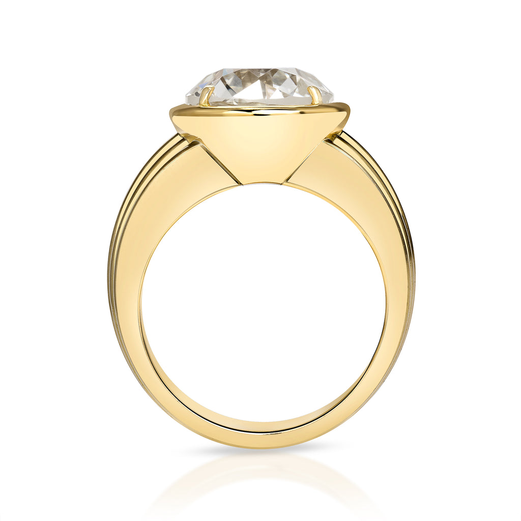 5.01ct L/VS1 GIA certified old European cut diamond prong set in a handcrafted 18K yellow gold mounting.