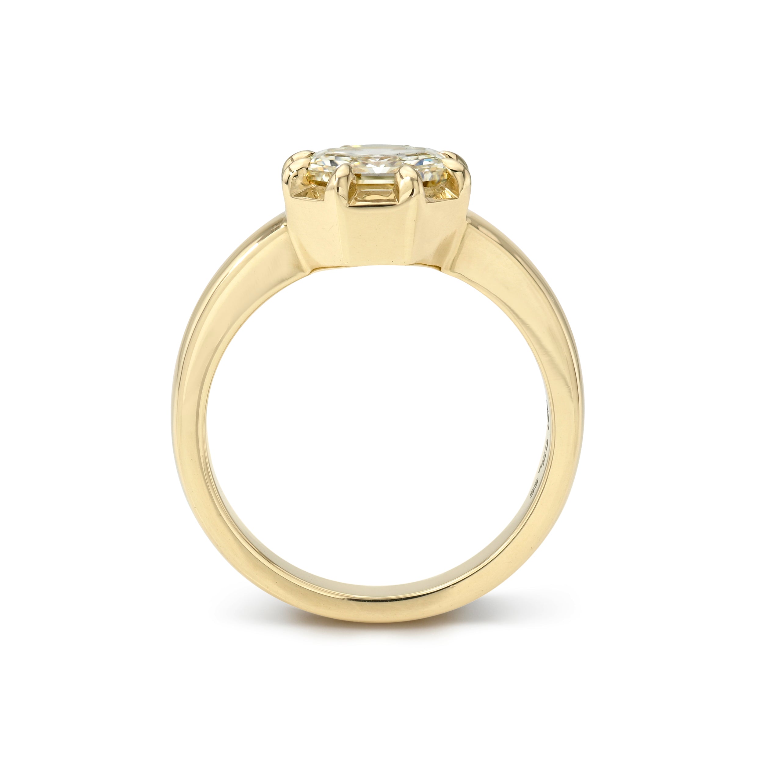 1.80ct M/VS1 GIA certified octagonal step cut diamond prong set in a handcrafted 18K yellow gold mounting.