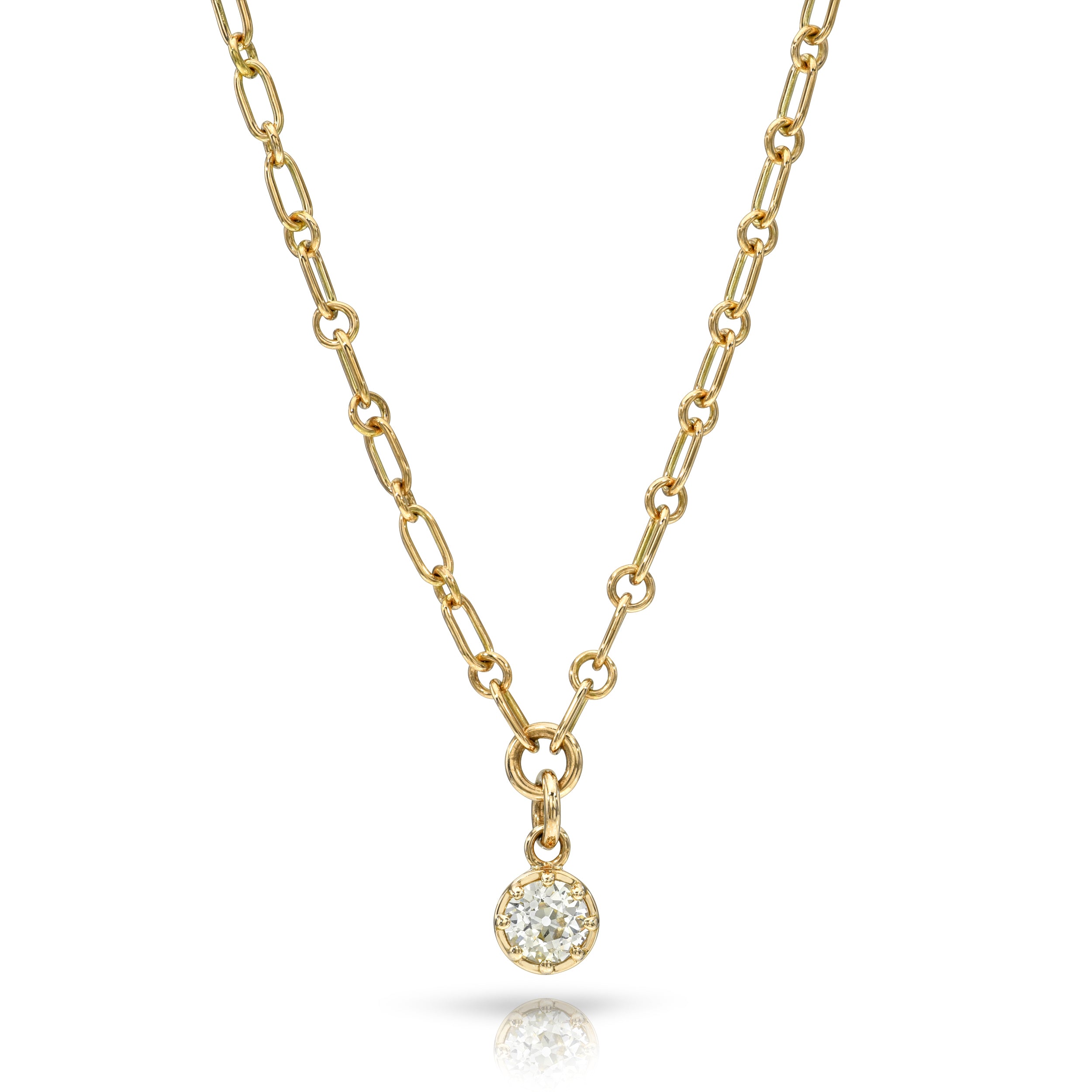 1.22ct M/VS1 GIA certified old European cut diamond prong set on our handcrafted 18K yellow gold Mini Lo chain.
