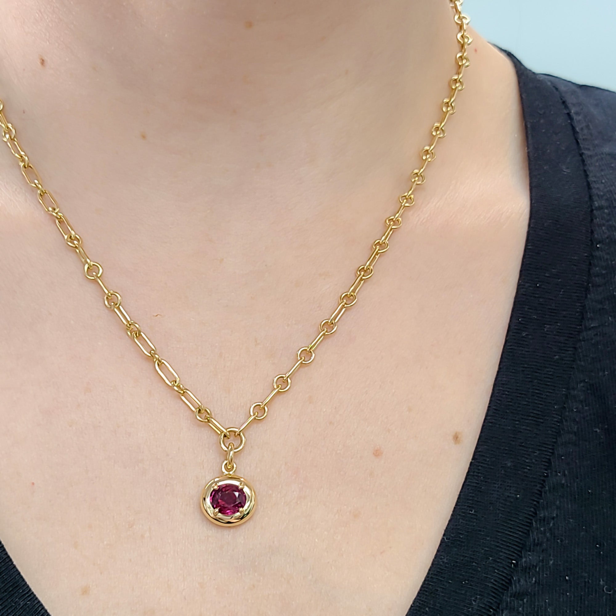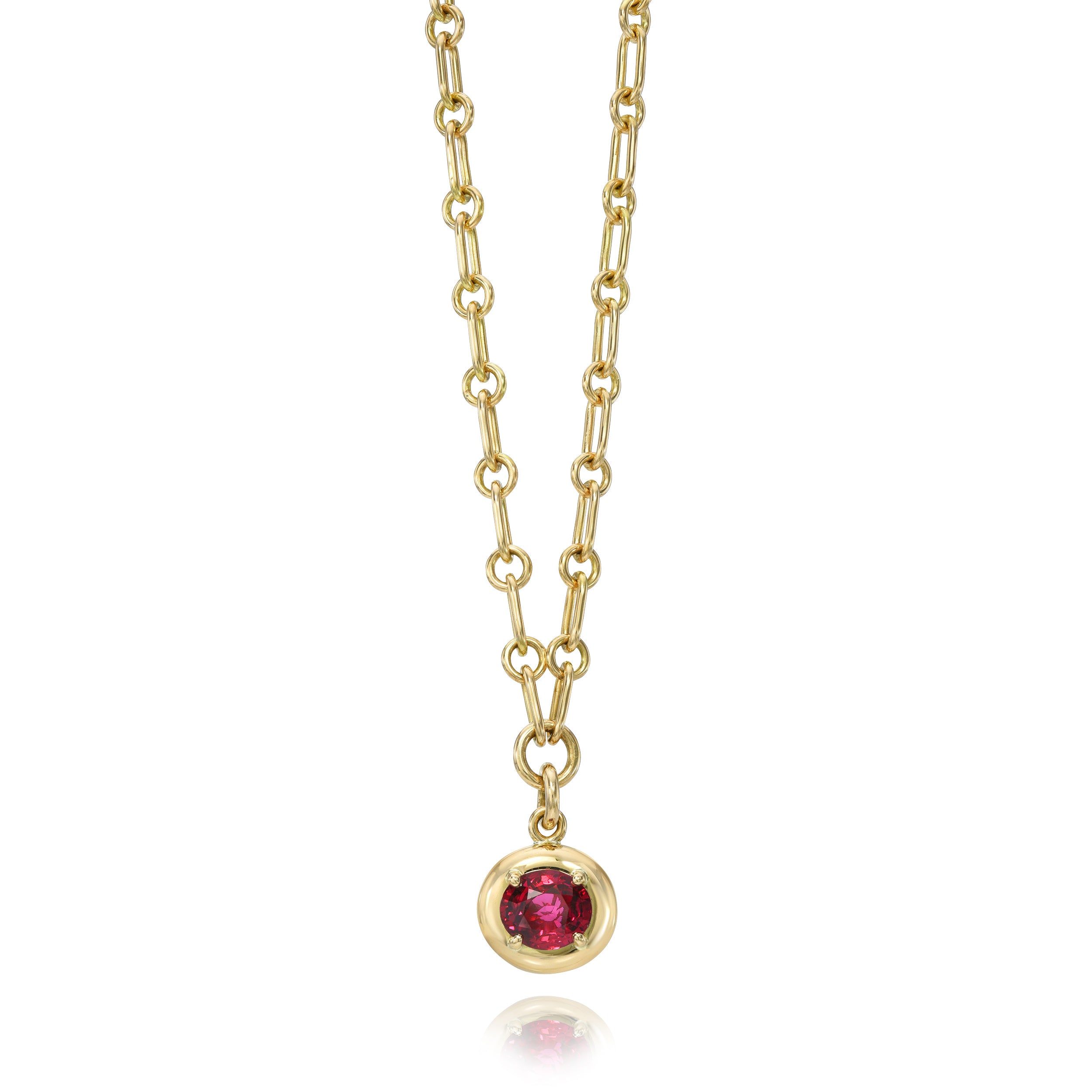 1.72ct GIA certified Thai oval cut red ruby prong set on our handcrafted 18K yellow gold Mini Lo chain