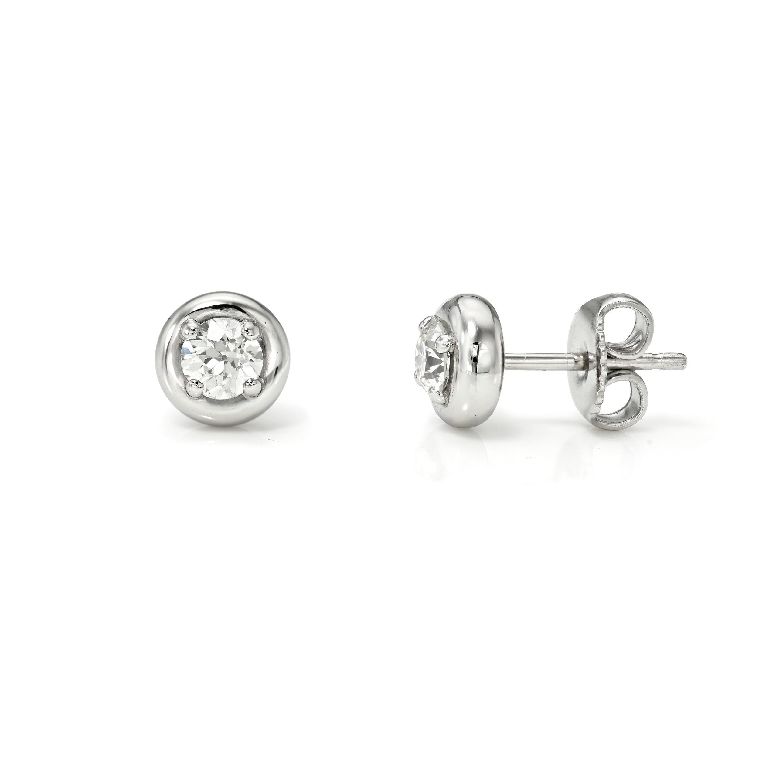 0.51ctw H-I/VS old European cut diamonds prong set in handcrafted platinum stud earrings.